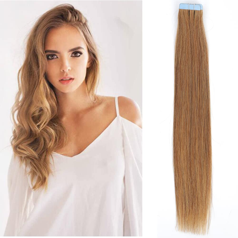 Amella Hair Tape in Hair Extensions Human Hair Silky Straight Remy 24 inches #27 Light Brown Color 20pcs 40g