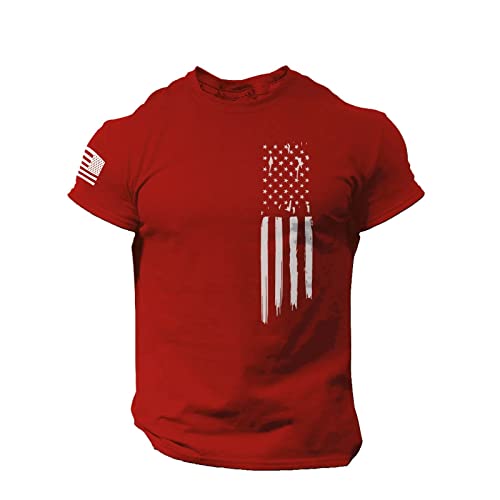 American Flag Shirt Men Plus Size Flag Tops Graphic T Shirts Men American Star and Stripes Flag Shirt Country Shirts for Men White and Red Graphic Tee Summer Blouse USA July Red S