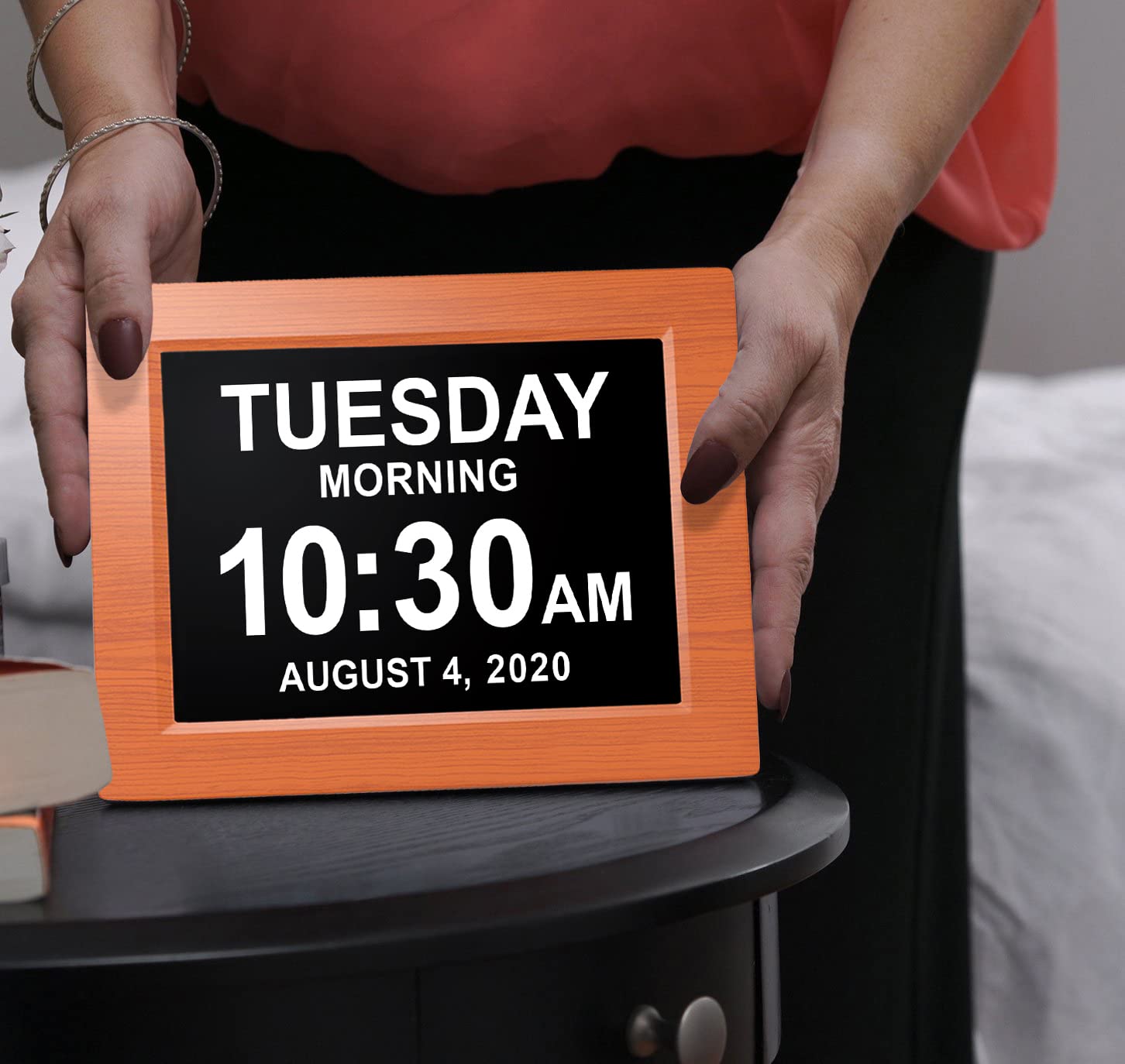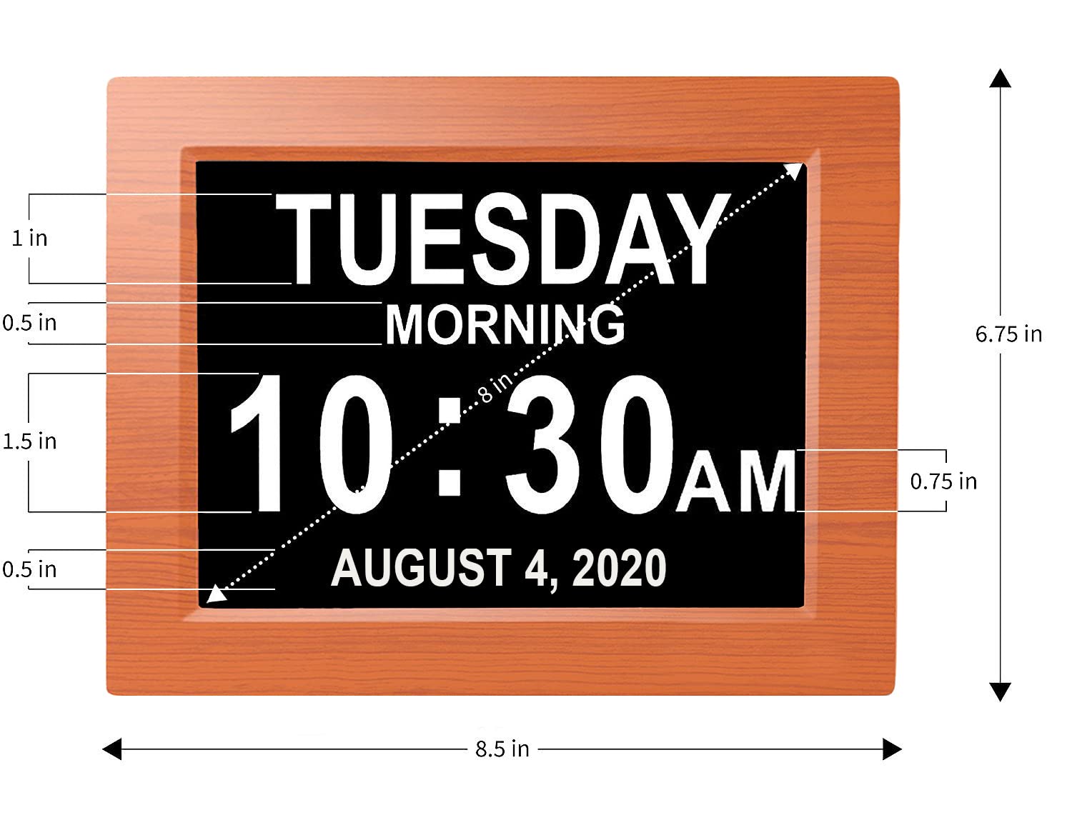 American Lifetime 【New 2025】 Dementia Clock Large Digital Clock for Seniors, Alzeimer Clock Large Display with Custom Alarms, Clock with Day & Date for Elderly, Digital Calendar Brown Wood