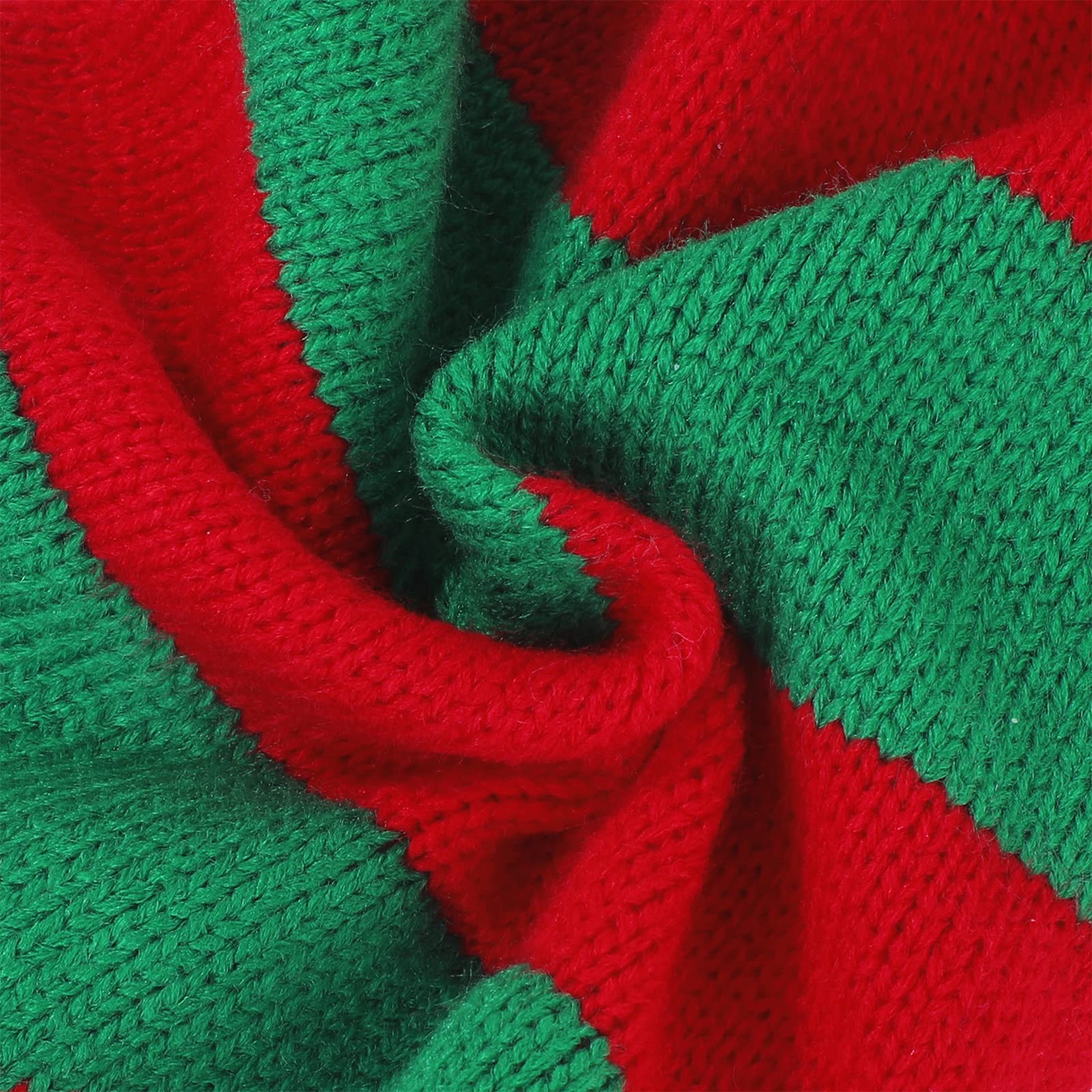 American Trends Santa Hat Adult Christmas Beanie Elf Hat Slouchy Winter Knit Xmas Skull Cap for Women Men Xmas Holiday Party Stripe 2