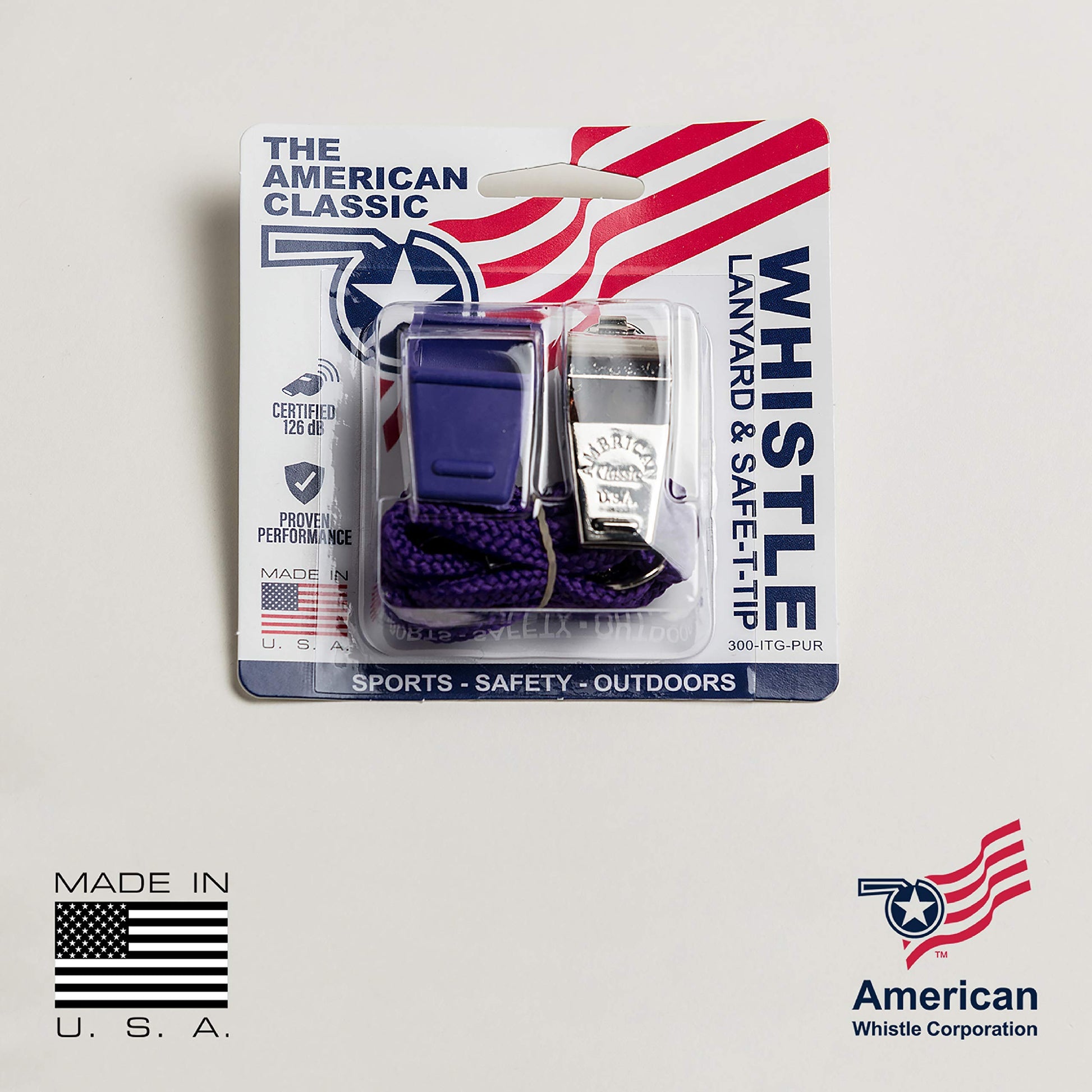 American Whistle Corporation American Classic Whistle - 126 db Solid Brass Whistle with Lanyards and Safe-T-Tip - Made in America (Purple)