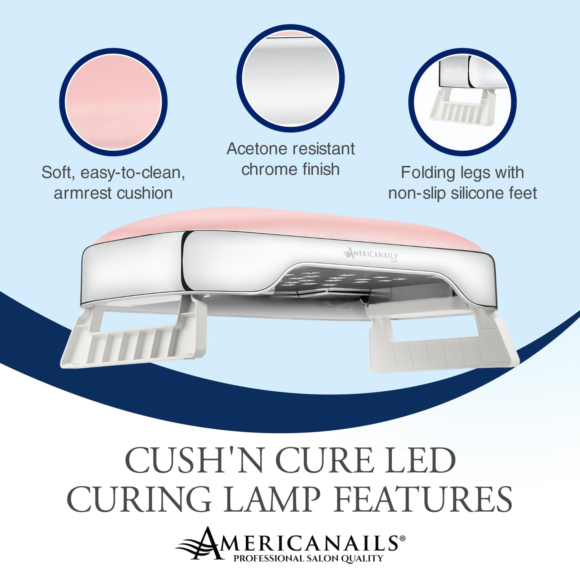 Americanails Cush'n Cure LED Nail Curing Lamp with Armrest, USB Type-C Power Input, Acetone-Resistant Finish, and Soft, Easy-to-Clean Armrest Cushion