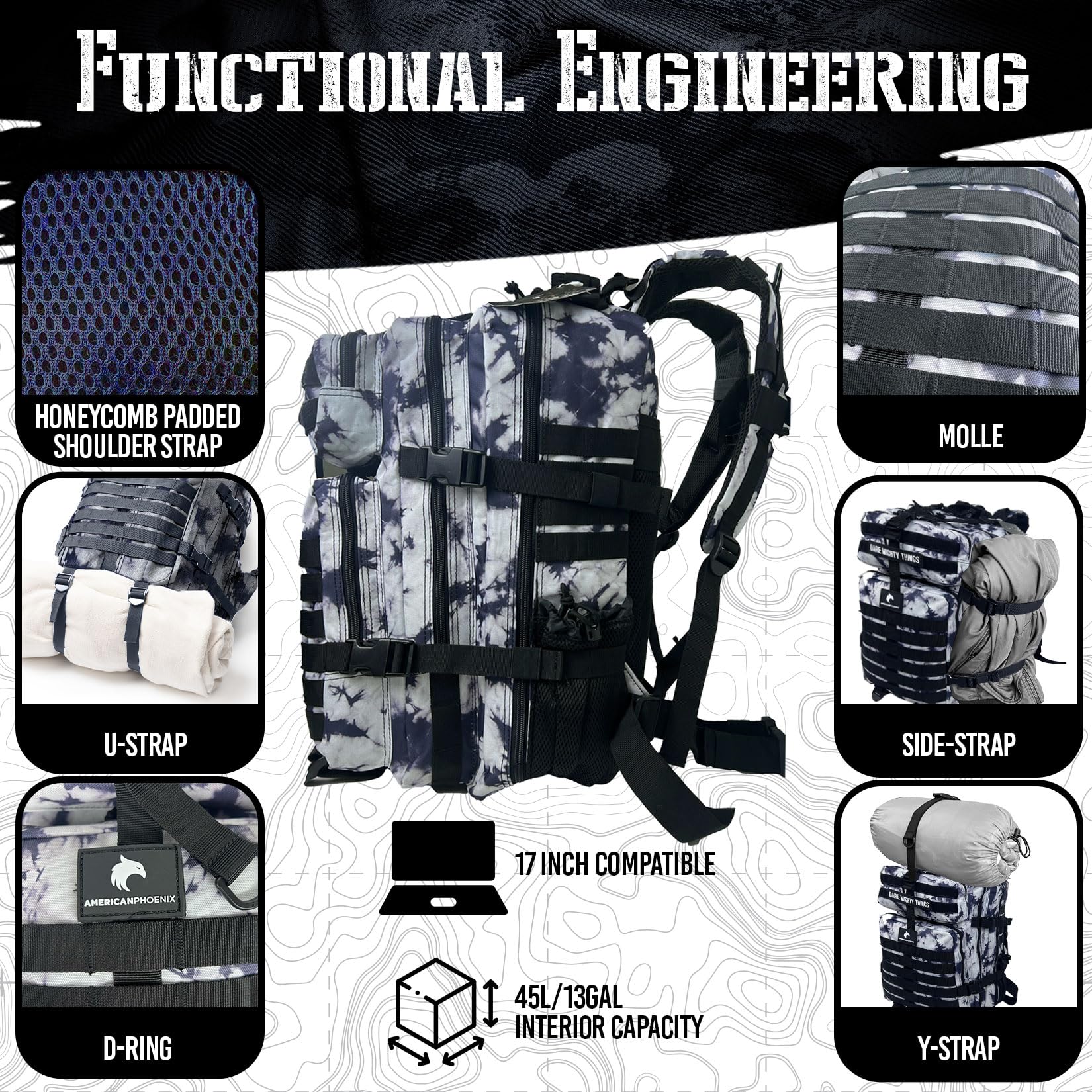 AMERICANPHOENIX 45L Elite Tactical Backpack | 3X Stronger Work & Military Backpack | Water Resistant and Heavy Duty | 3 Day MOLLE Bug Out Bag (Black Ice)