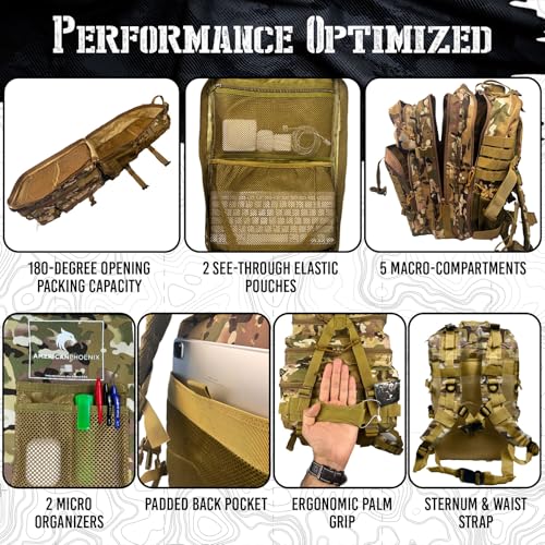 AMERICANPHOENIX 45L Elite Tactical Backpack | 3X Stronger Work & Military Backpack | Water Resistant and Heavy Duty | 3 Day MOLLE Bug Out Bag (Military OCP)
