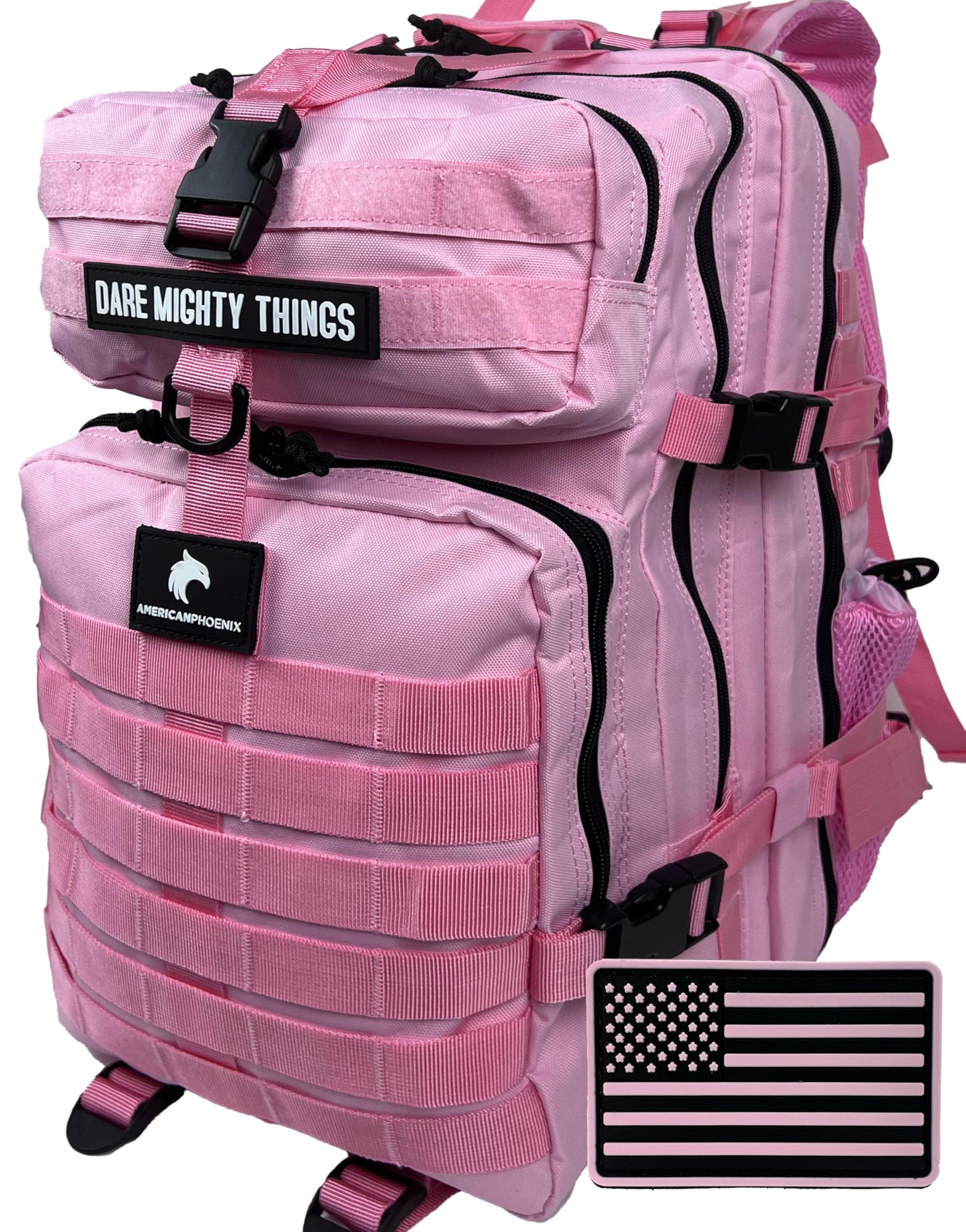 AMERICANPHOENIX 45L Elite Tactical Backpack | 3X Stronger Work & Military Backpack | Water Resistant and Heavy Duty | 3 Day MOLLE Bug Out Bag (Rose Pink)
