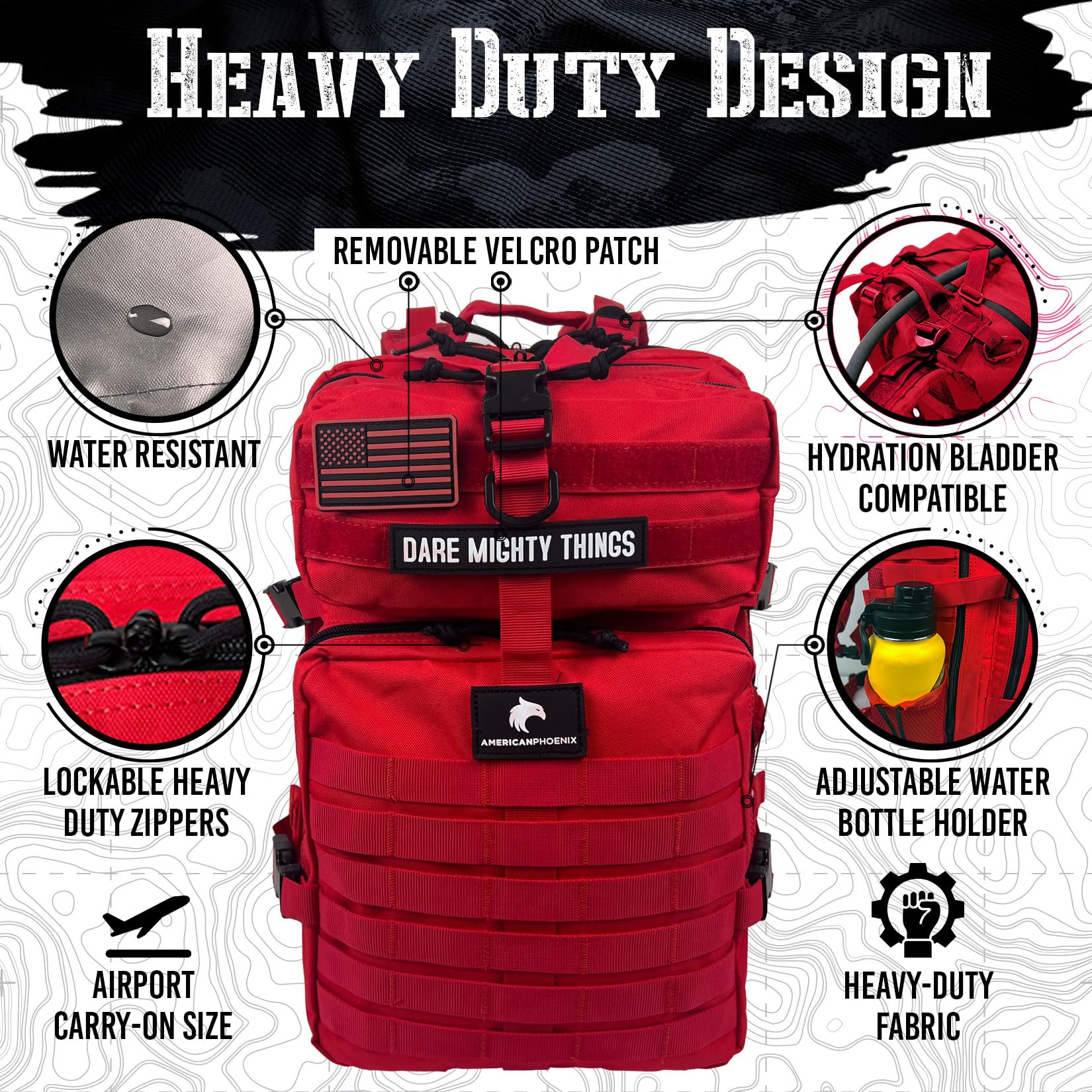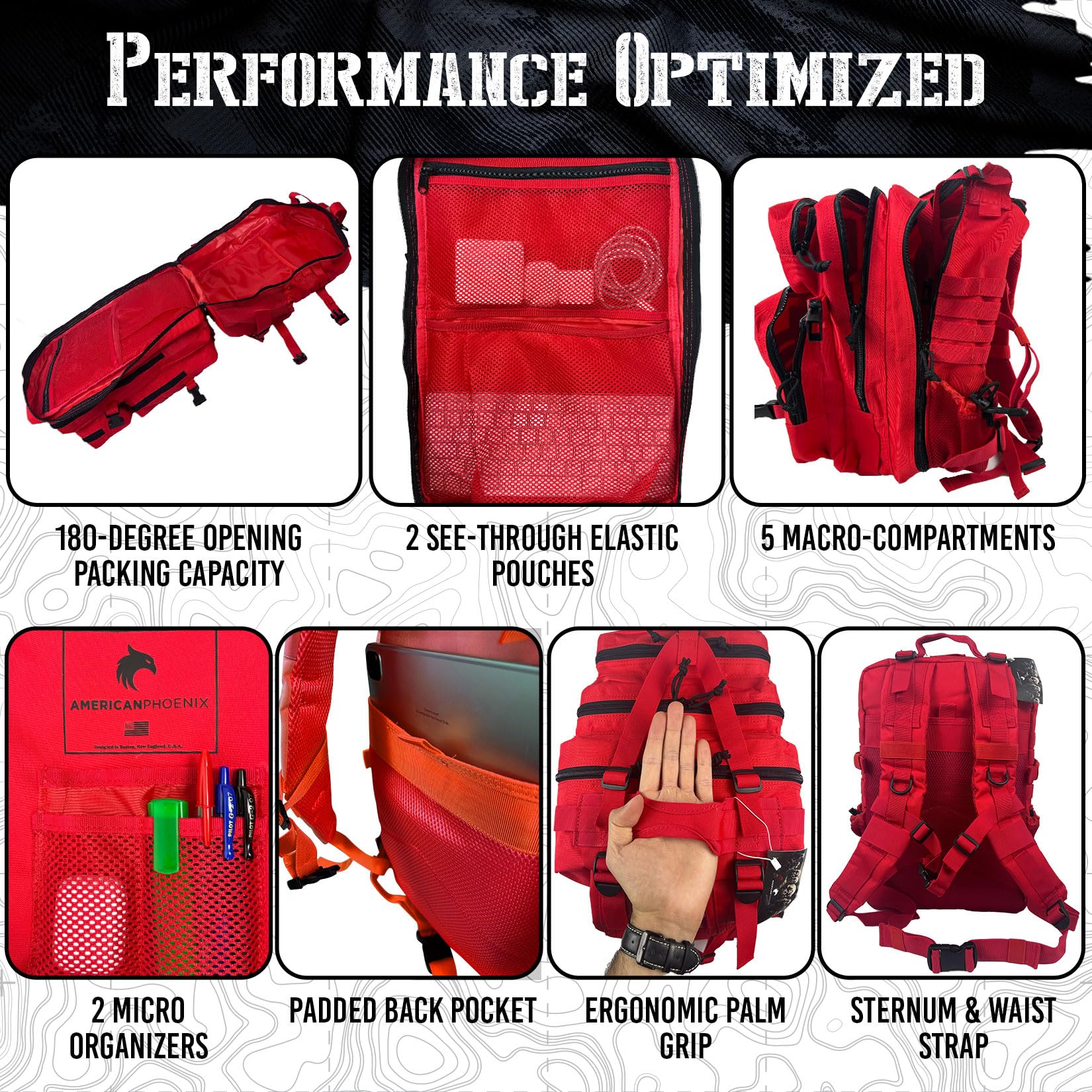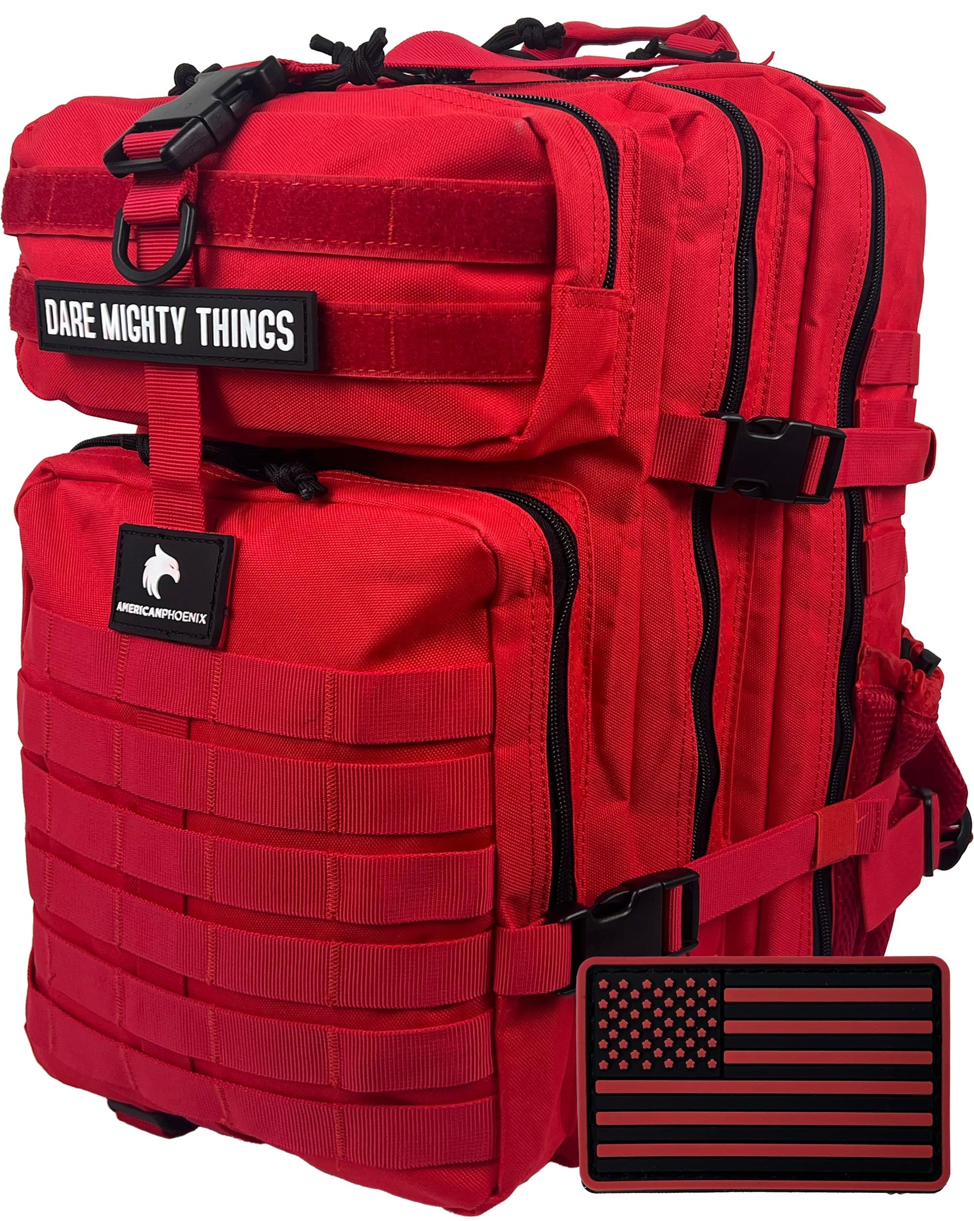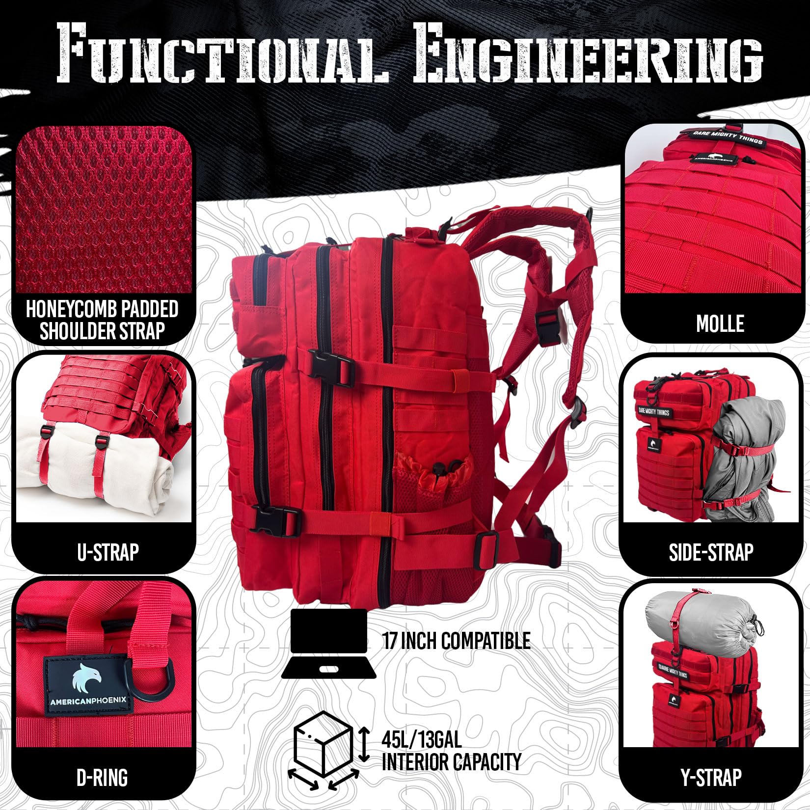 AMERICANPHOENIX 45L Elite Tactical Backpack | 3X Stronger Work & Military Backpack | Water Resistant and Heavy Duty | 3 Day MOLLE Bug Out Bag (Scarlet Sage)