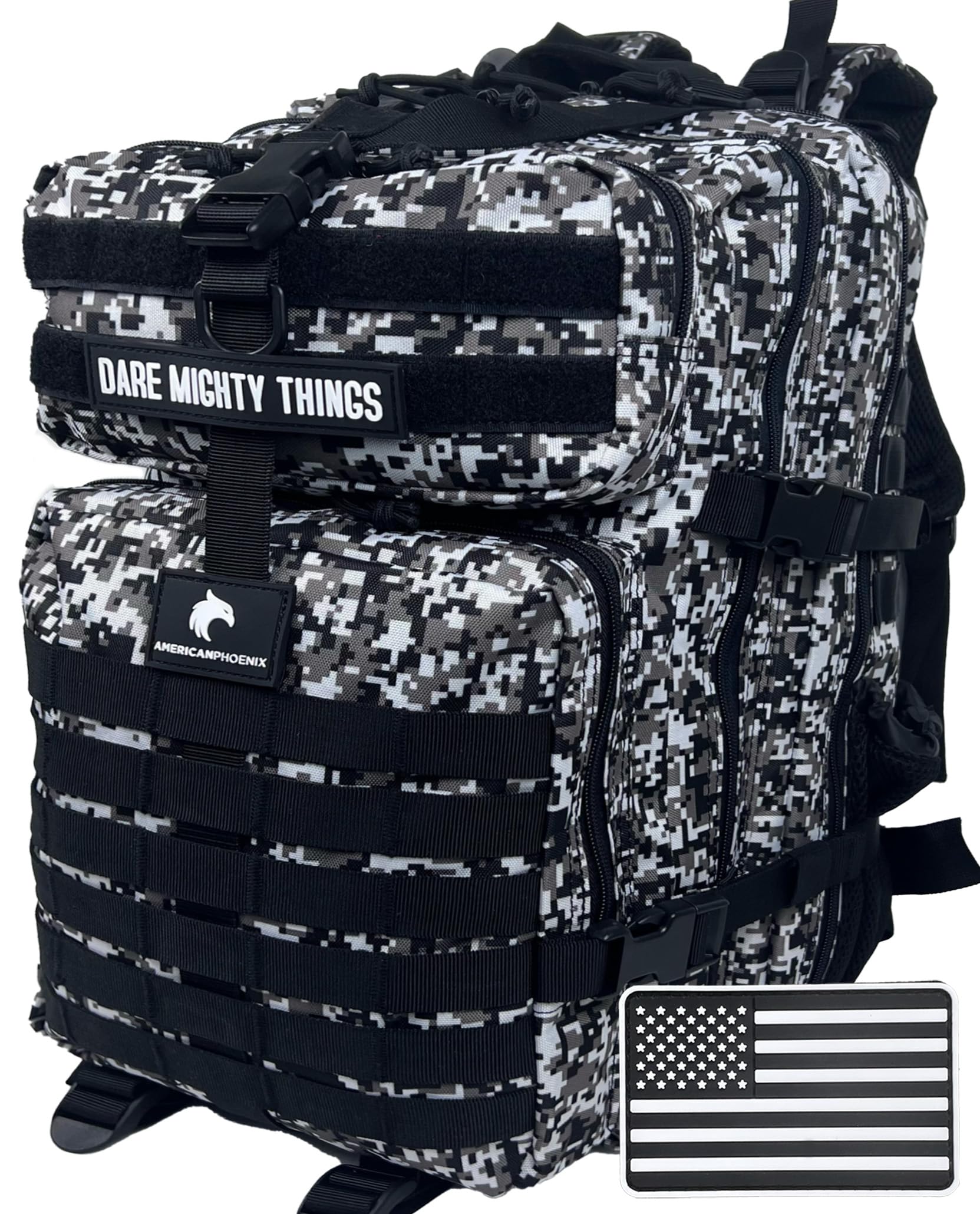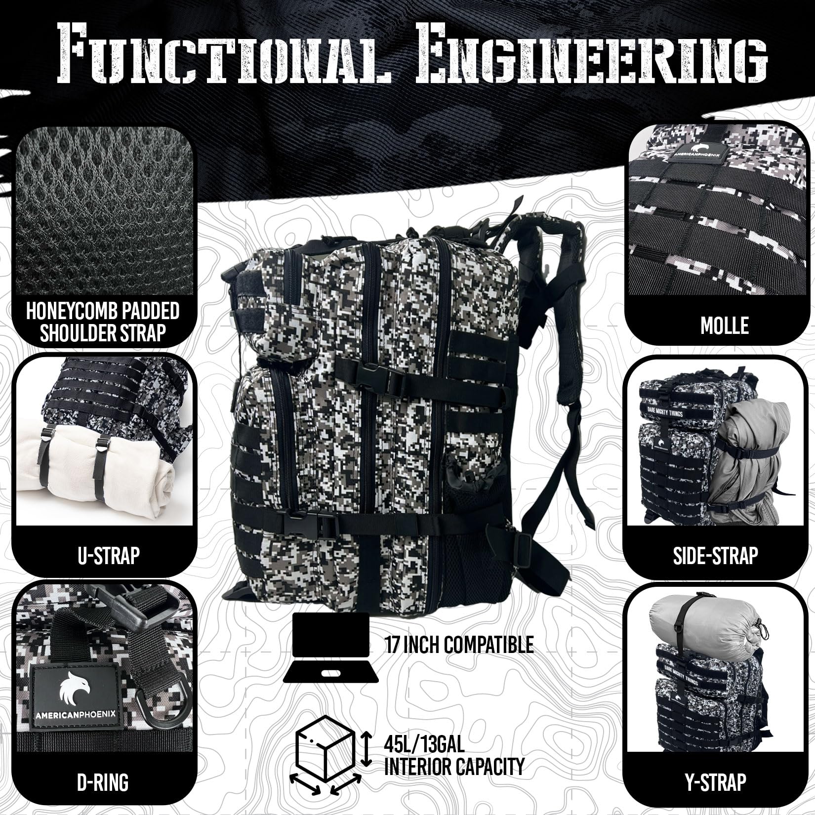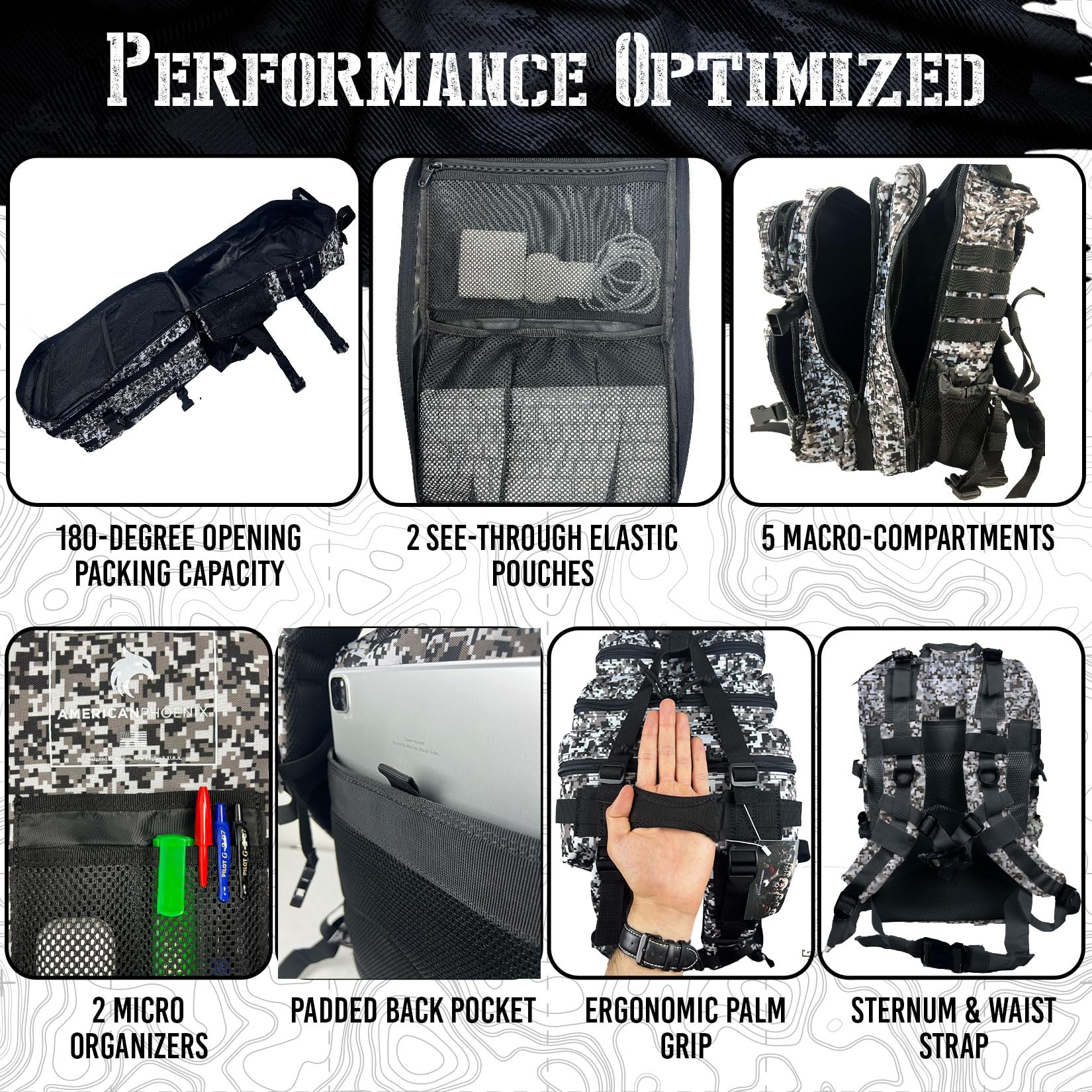 AMERICANPHOENIX 45L Elite Tactical Backpack | 3X Stronger Work & Military Backpack | Water Resistant and Heavy Duty | 3 Day MOLLE Bug Out Bag (Snow Leopard)