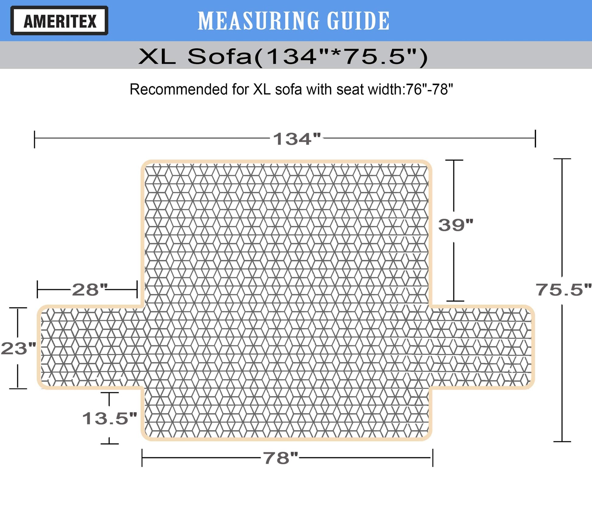 - SUITBLE FOR VARIOUS SOFA TYPES - Seat Width: (XL Sofa) up to 78', (Sofa) up to 68', (Loveseat Oversized) up to 54', (Loveseat) up to 46', (Recliner Oversized) up to 30', (Recliner) up to 23', (Chair) up to 23'. See MEASURING GUIDE in photos. SEARCH FOR MORE SIZES IN OUR SHOP.