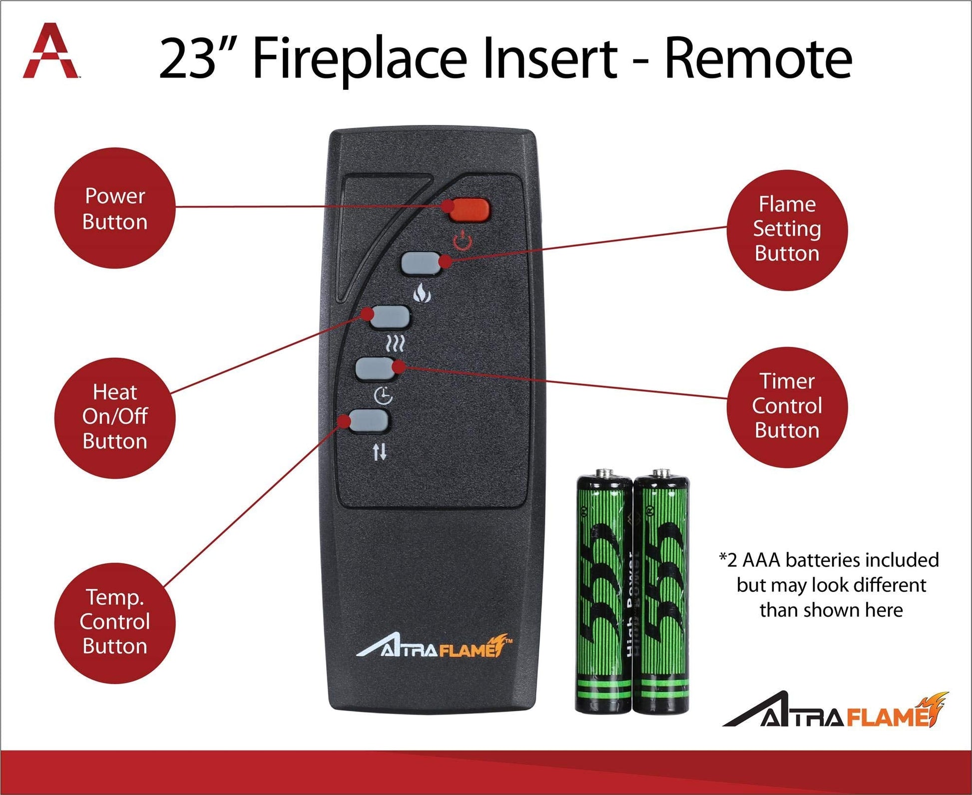 - The 23' electric fireplace insert heats up to 400 sq. ft. and works with or without heat. Adjust the flame and heat settings with the remote or touch panel. It plugs into a standard 120V outlet