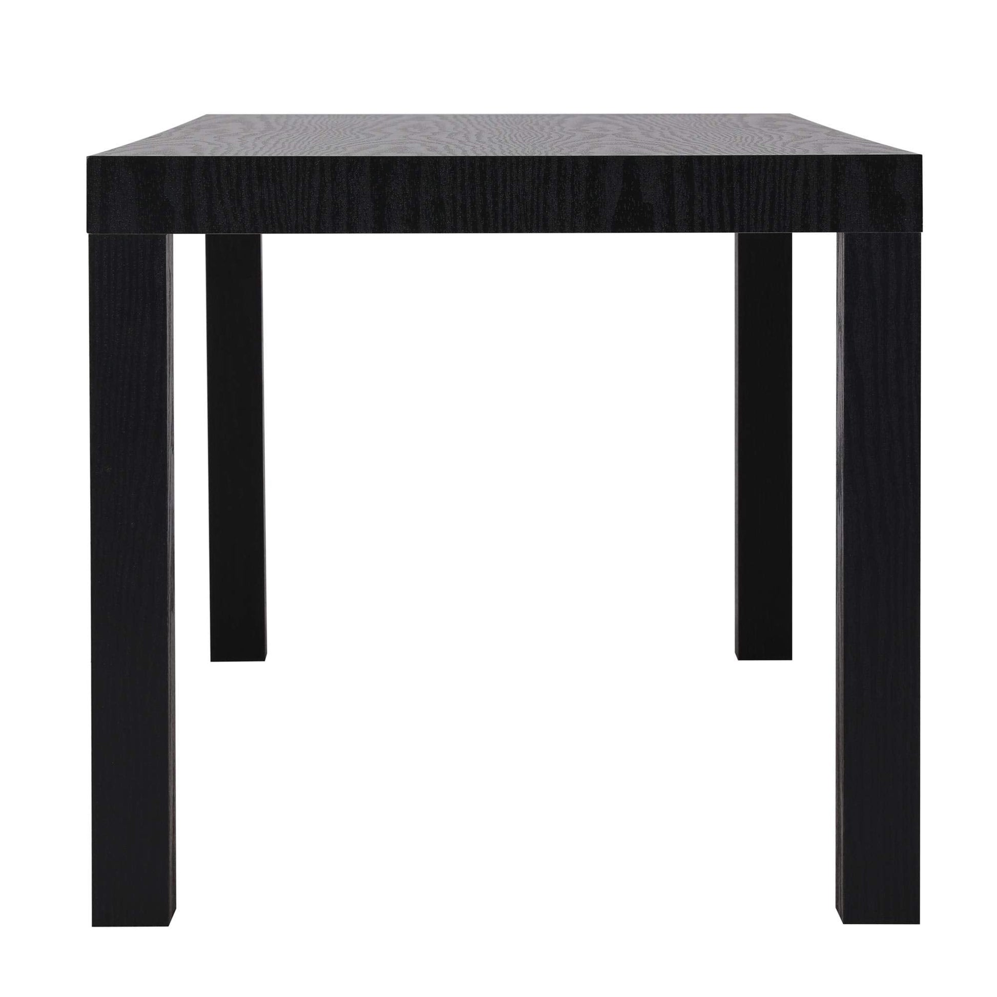 Details: Keep your essentials close by with the Ameriwood Home Parsons Coffee Table. Made of PVC laminated hollow core, the black oak woodgrain finish pairs well with any style and decor. Keep your reading lamp, remotes, and electronics on the table top to have everything you need for a night in within reach.The sturdy construction and water resistant finish will keep this table looking great for years to come. The Coffee Table ships flat to your door and requires minimal assembly upon opening. Simply attach the 4 legs to begin using. Once assembled, the Coffee Table measures to be 17.5'H x 39'W x 19'D, suitable for use as coffee tables small spaces.