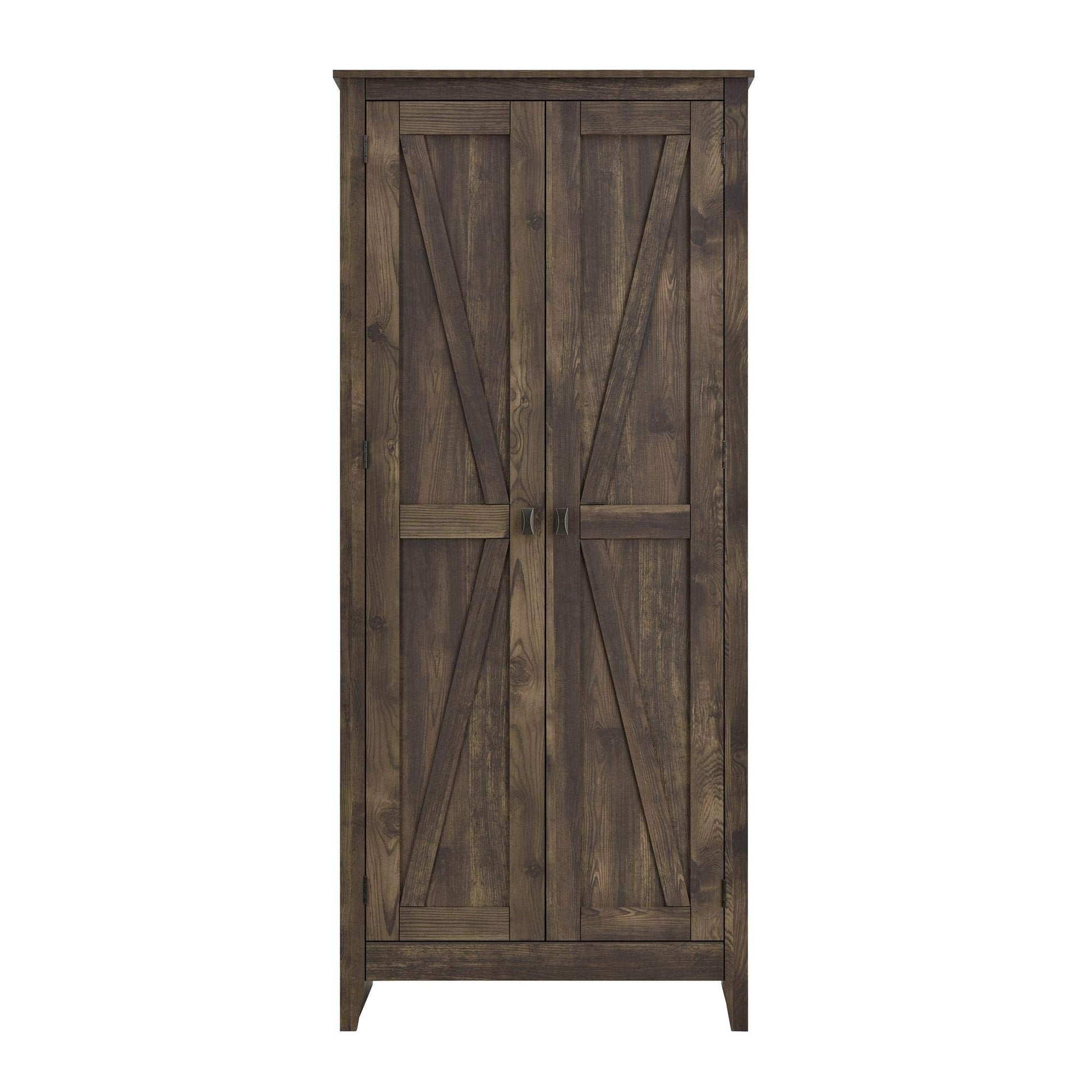 Details: This Systembuild Evolution Farmington 31.5' Storage Cabinet is inspired by the weathered look of an old barn. The cabinet for living room farmhouse style brings a unique style element to your space. The rustic finish gives this storage cabinet for living room its rustic appearance. Take advantage of the four shelves with two of the shelves being adjustable in this closed storage cabinet to help with storage and organization. This storage cabinet stand ships flat to your door and requires assembly by two adults.