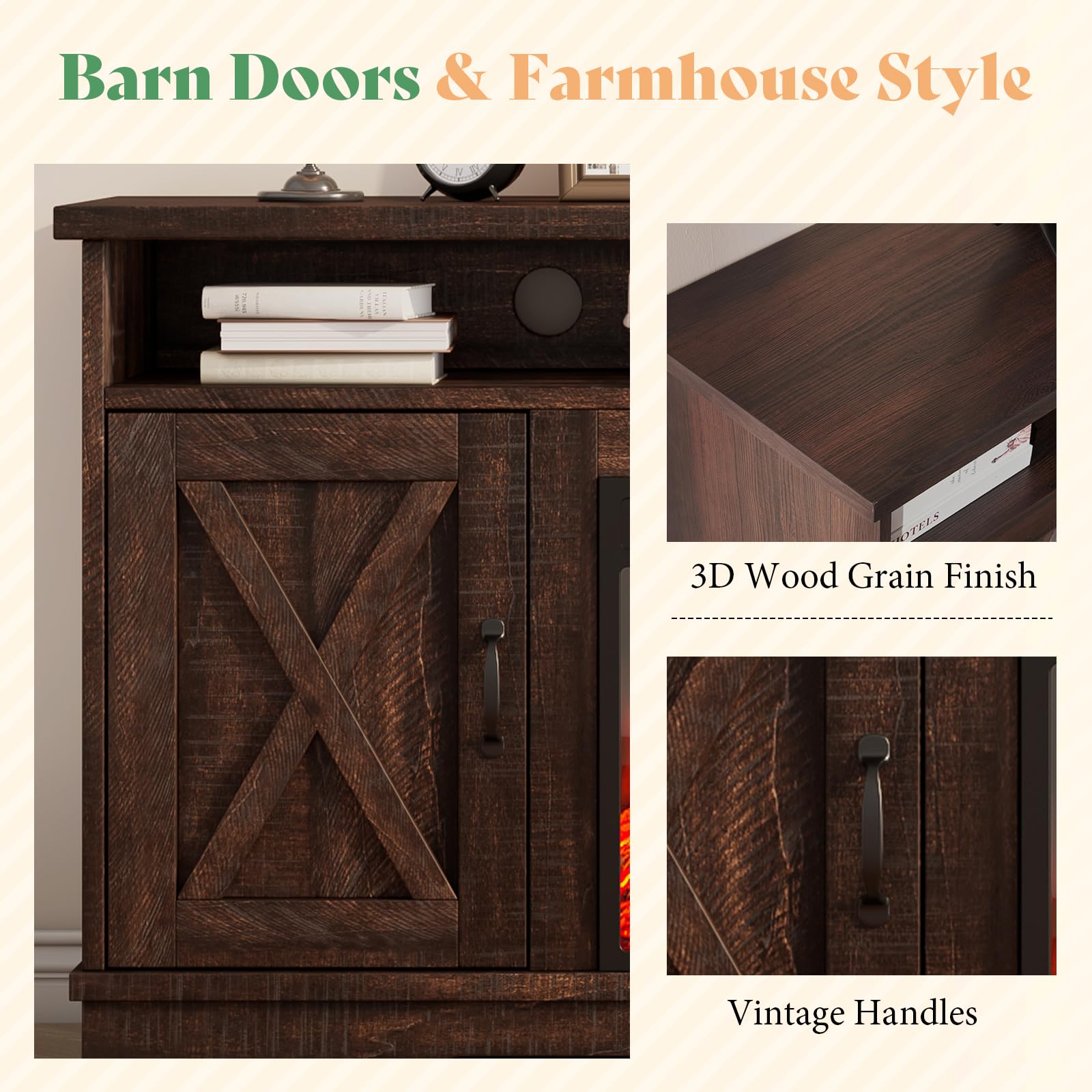 - Farmhouse Barn Doors Aesthetic: 3D rustic wood grain finish and special barn door pattern combining modern and traditional farmhouse style adding a touch of personality charm to your living room