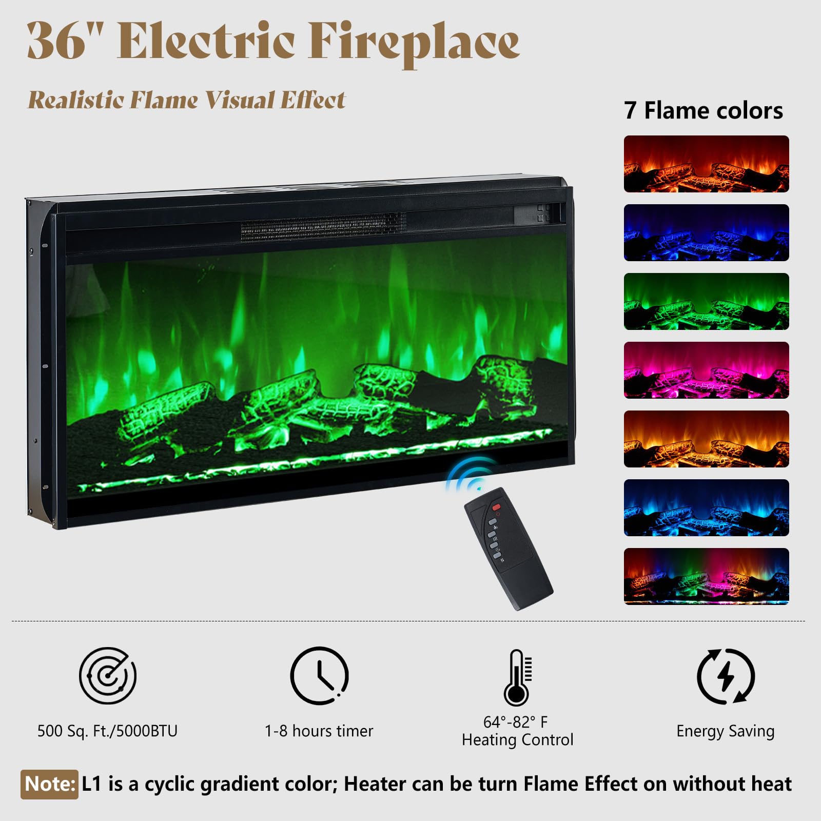 • [7-Color Electric Fireplace] The built-in 36-inch fireplace features 7 flame color modes to create a cozy ambiance. The flame effect can be used with or without heat, 1H-8H timer settings for safety and energy efficiency.