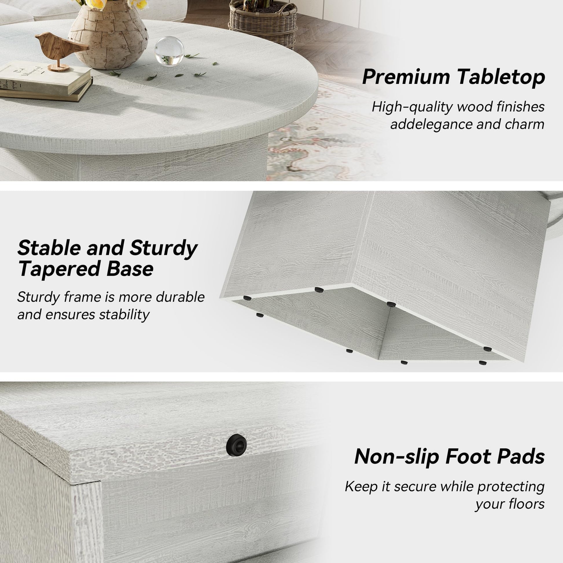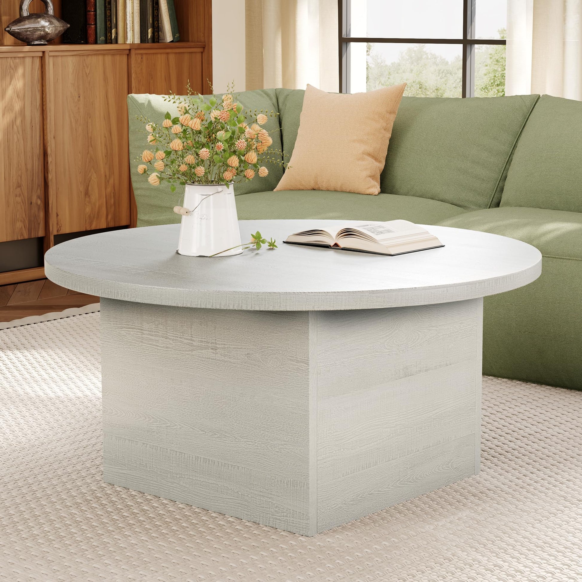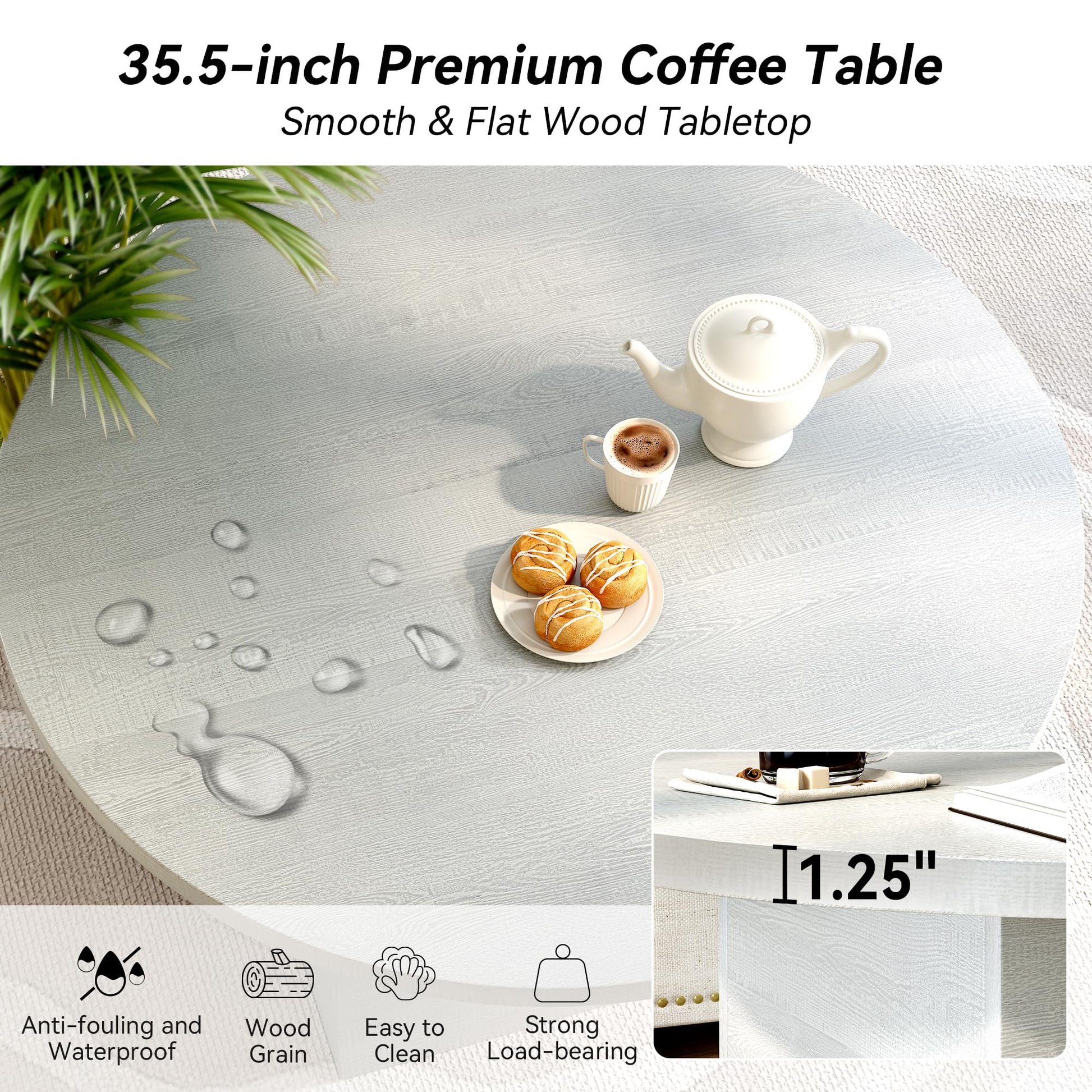 AMICLIBER Round Coffee Table, 35.5-Inch Modern Engineered Wood Center Coffee Tables for Living Room, Home Office Wooden Farmhouse Rustic Cocktail Tea Accent Table,White
