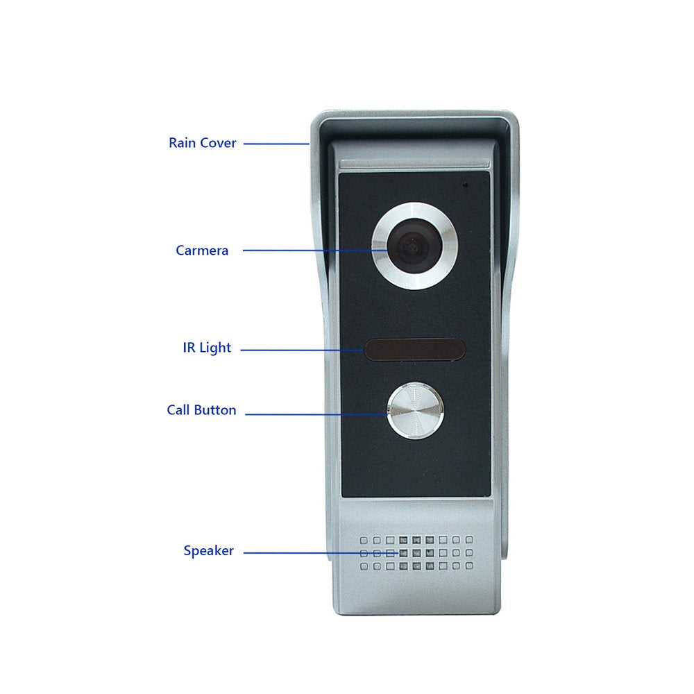 - 7 MAIN FEATURES --- 7 Inch LCD screen;16 different kinds of door bells chimes; Volume, brightness and contrast are adjustable; IR camera with night vision;Electric lock-control function;Handfree intercom;Auto turn off.