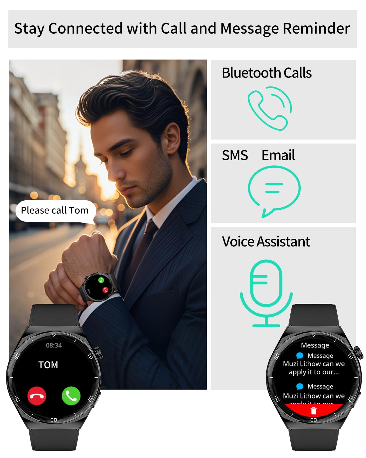 AMOLED Smart Watches for Men Women Fitness Tracker Watch Smartwatch for Android Phones/iPhone Compatible 1.43" HD Mens Watch with SOS ChatGpt AI Voice Heart Rate Sleep Female Cycle IP68 Waterproof