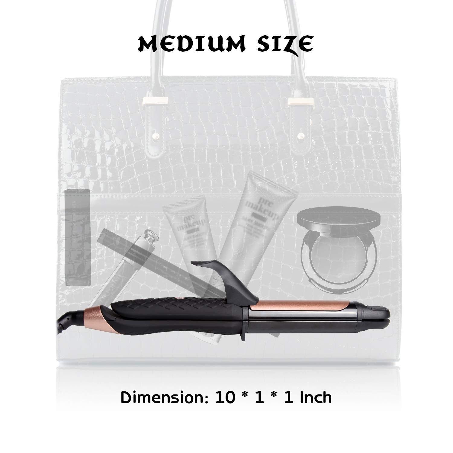 - Worldwide Use - Travel curling iron and hair straightener and curler 2 in 1 with worldwide dual voltage (100-240AC), all you need is just a plug adapter. Curling iron 1inch is just right for you. A beautiful diamond pattern carry bag is included in the package, pop the iron into it and you are ready to go, product size: 10'' * 1' * 1'