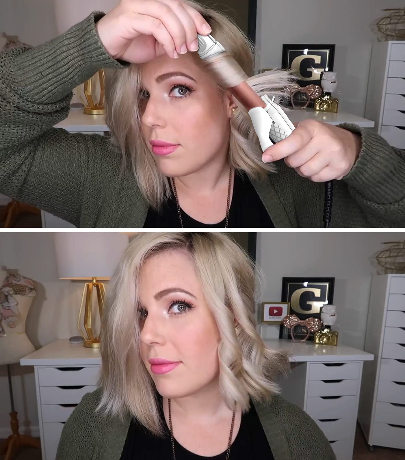 - Two In One - AmoVee travel curling iron combines with the mini hair straightener, only one button to switch from straight to curl. Helping you achieve super-sleek, straight hair, polished curls or cascading waves to create no-damage looks