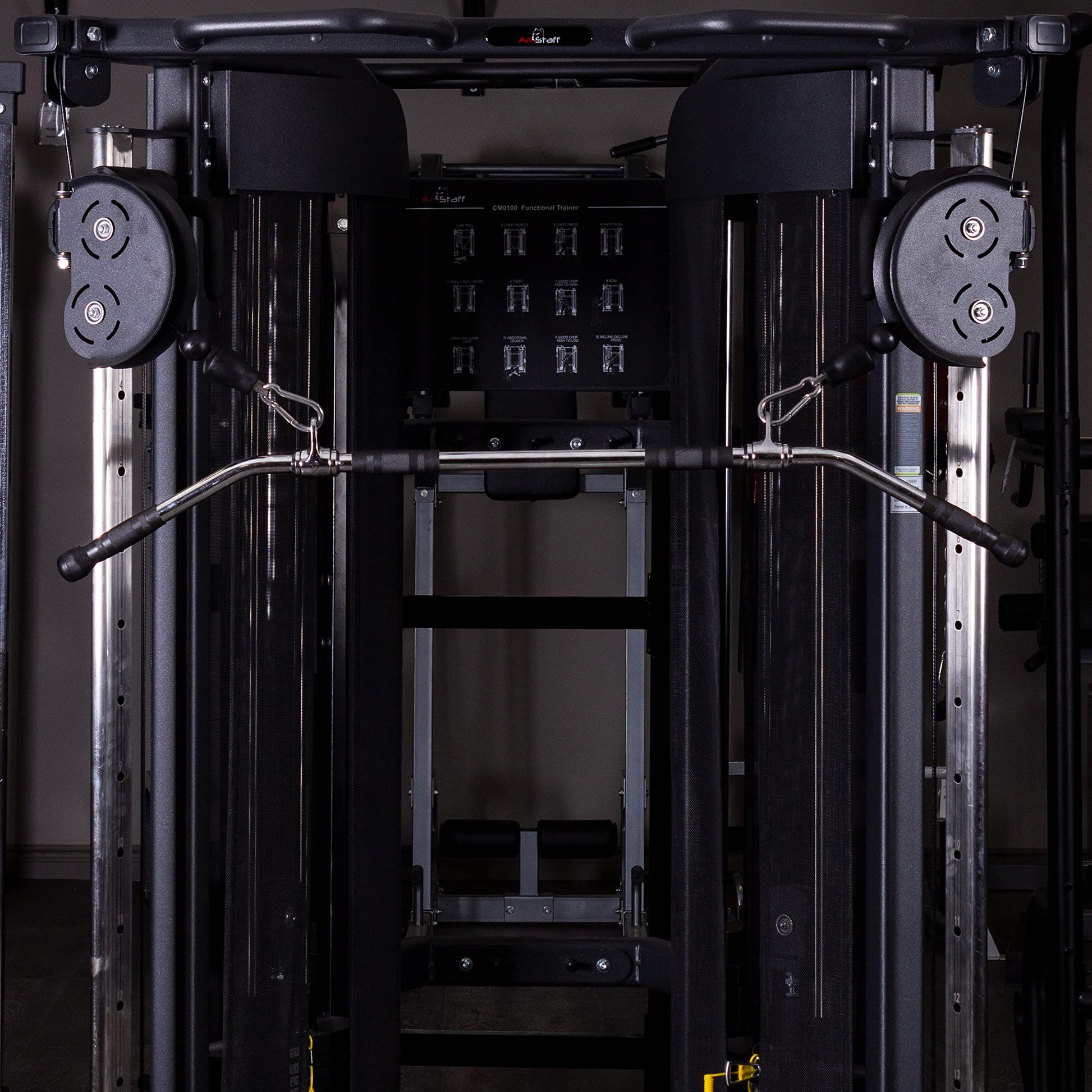 - 48' Wide Double Hook Design Lat Bar - Unique dual hook design allows you to multi-purpose use both weight stacks of the dual pulley functional trainer simultaneously for a smooth, unilateral movement.