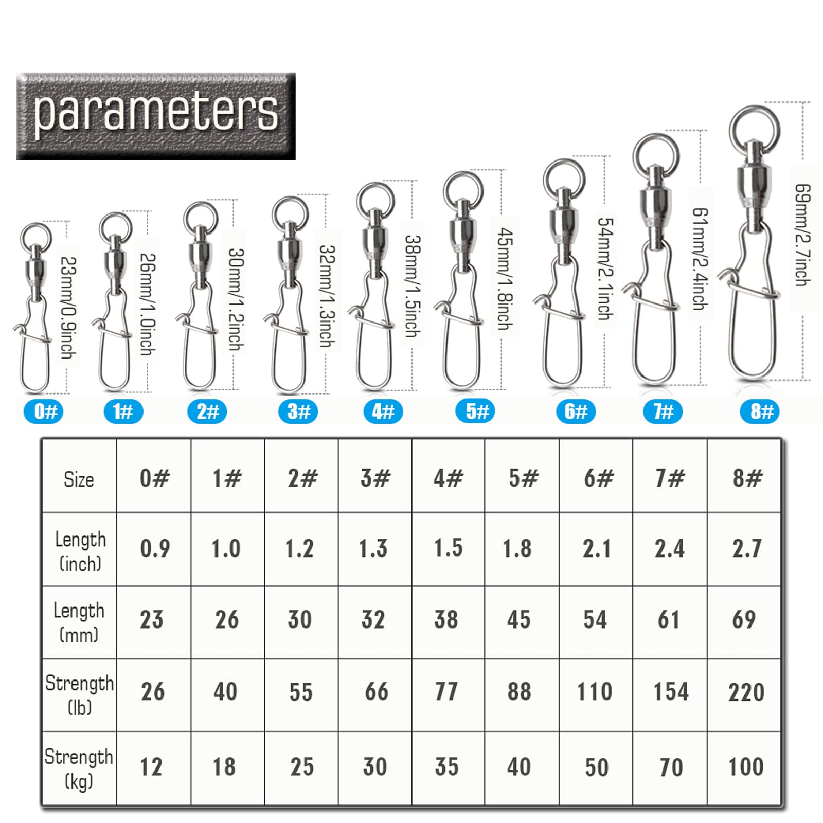 - High Strength: The fishing line ball bearing swivels are tightly locked and will balance external pressure when under a powerful pulling force. The duo lock fishing snap swivels bear more pressure than other swivels.