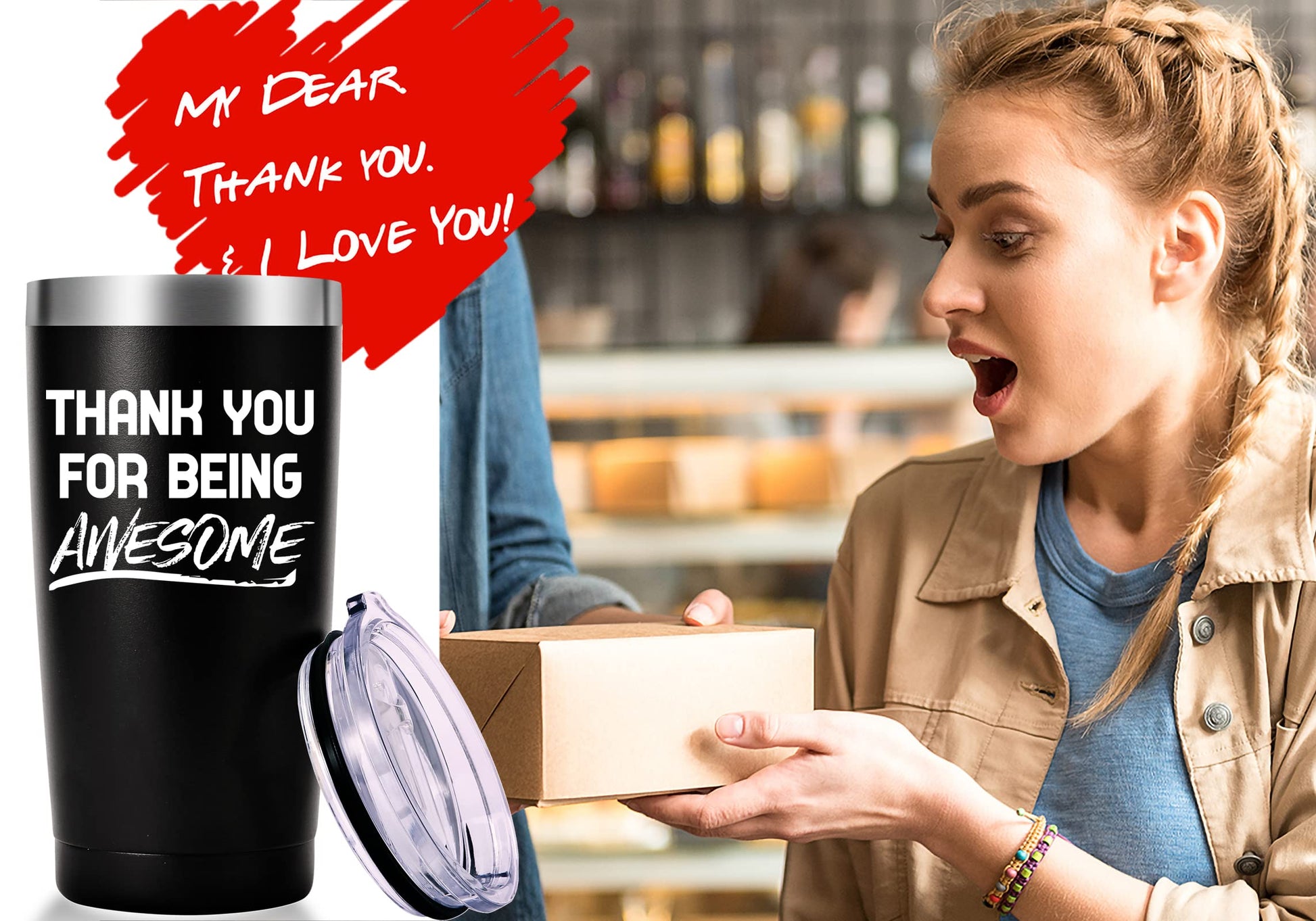 AMZUShome Thank You for Being Awesome Travel Mug Tumbler.Thank You Gifts,Inspirational Appreciation Graduation Christmas Birthday Gifts for Men Women Boss Coworker Friends(20oz Black)