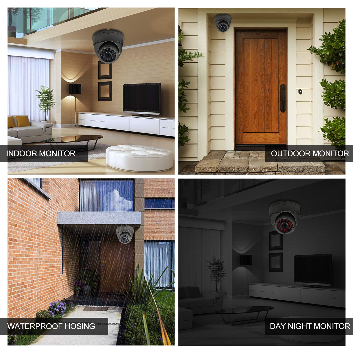 Analog CCTV Camera HD 1080P 4-in-1 (TVI/AHD/CVI/CVBS) Security Dome Camera Outdoor, 2.8mm-12mm Manual Focus/Zoom Varifocal Lens, Weatherproof Metal Housing 36 IR-LEDs Day & Night Monitoring (Grey)