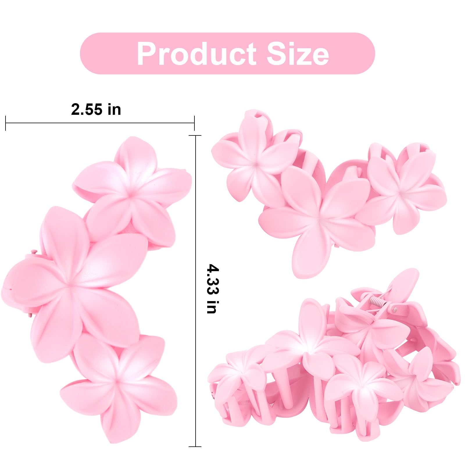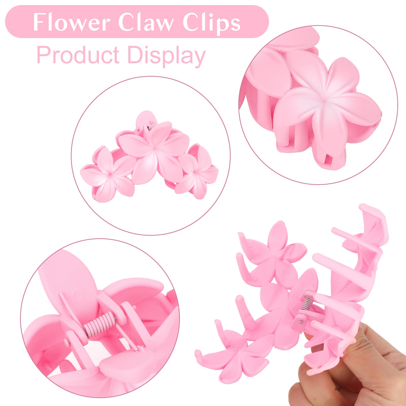 - Practical --- Those Big Hair claw clips is lightweight, fashion which easy to match any outfit. 4 packs flower claw clips in one package, the color is pink to match almost your outfits, hair colors and hairstyles. Simple flower shape make you looks very good taste.