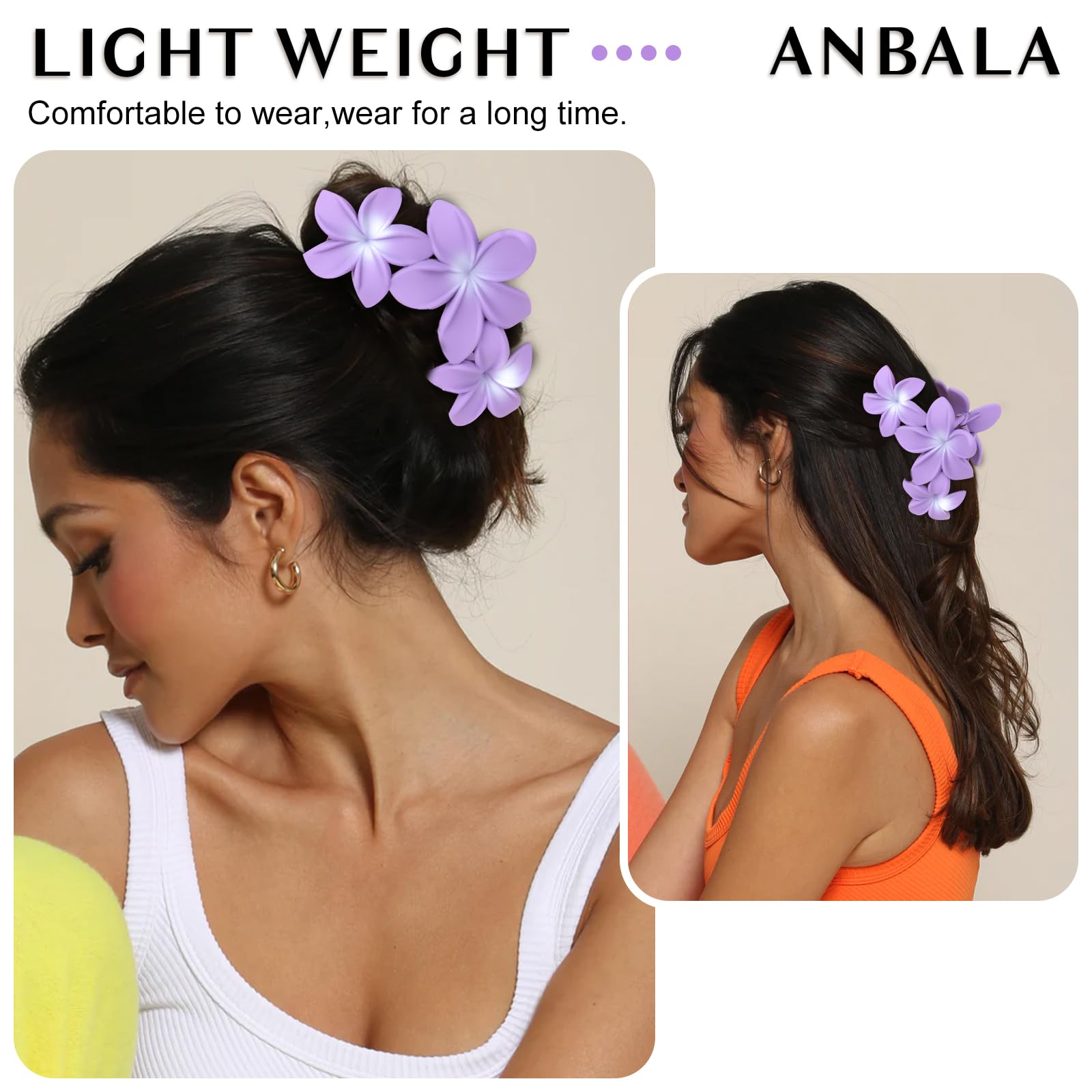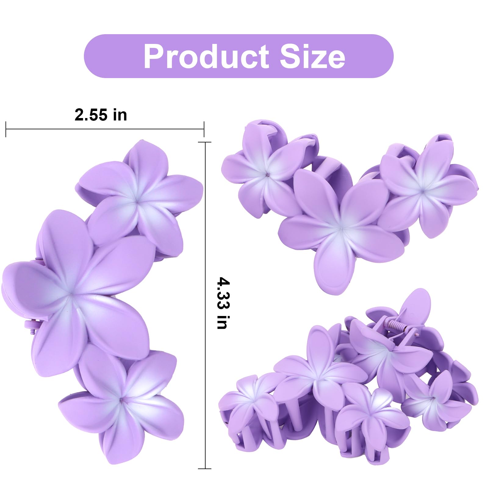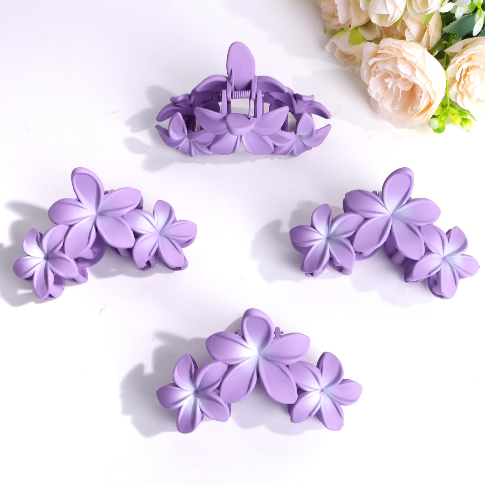 ANBALA Hair Clip, 4PCS Flower Design Plumeria Hair Clips, Large Non-Slip Strong Hold Claw Clips for Thick Hair, Beach Hair Accessories for Women Girls (Purple)