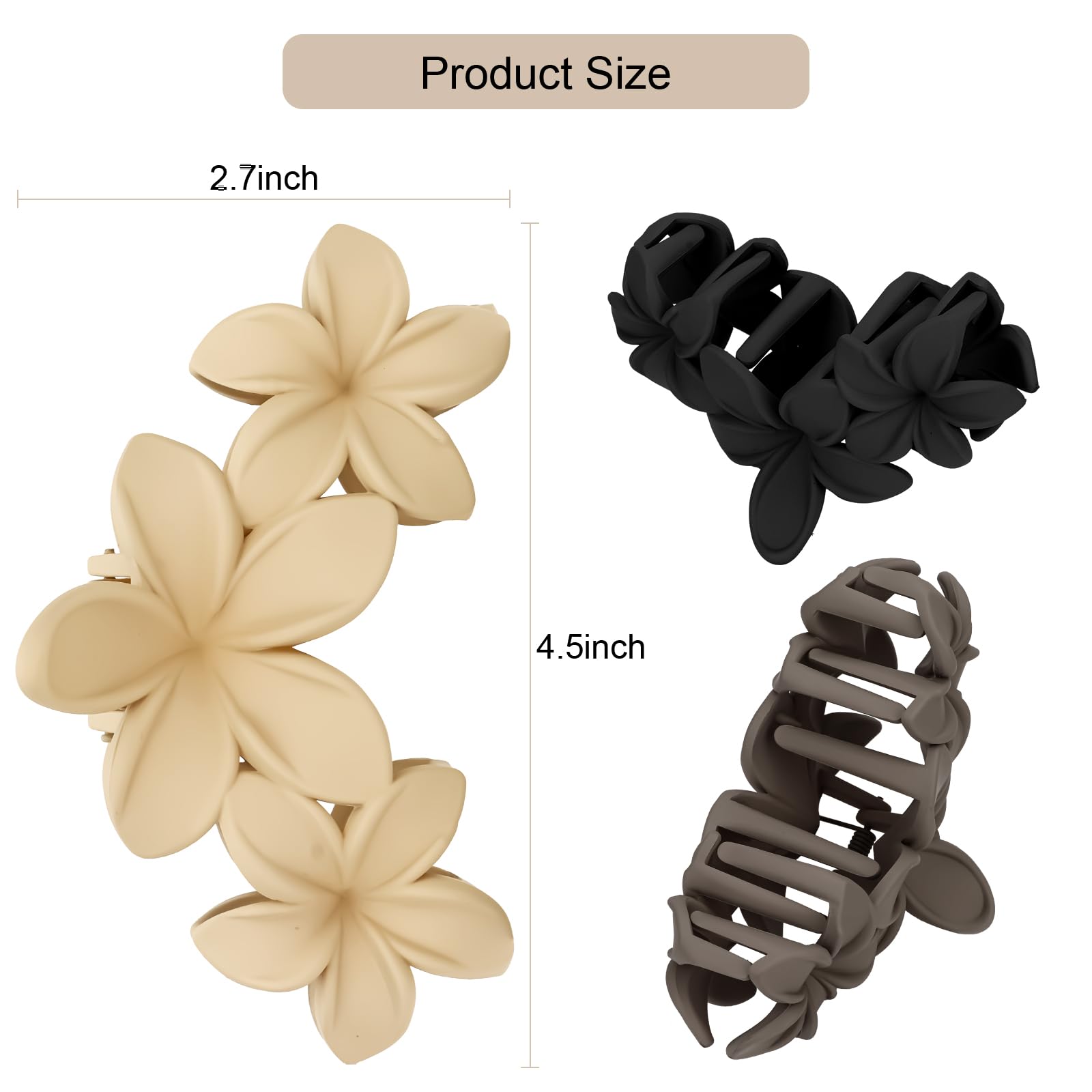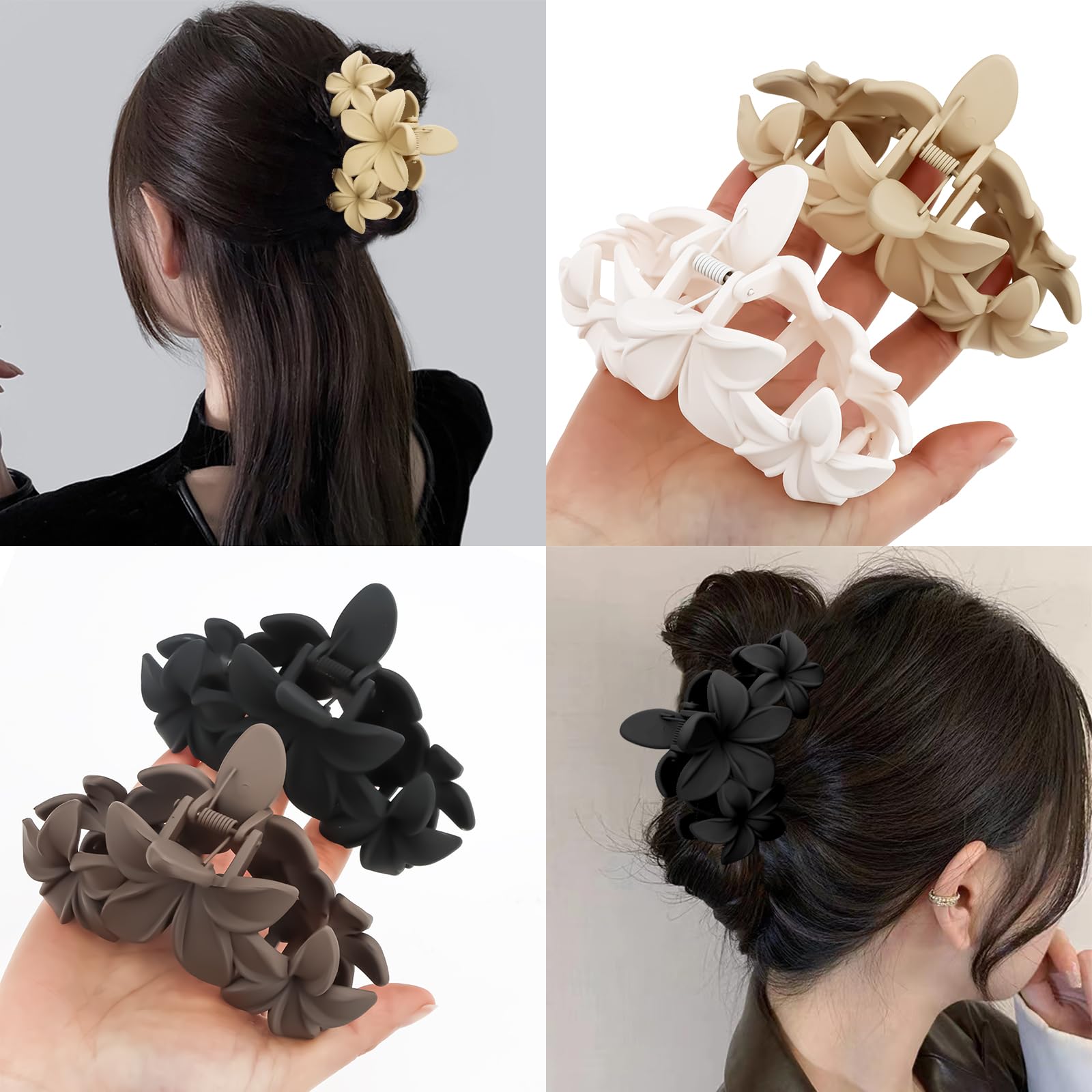 - Practical --- Those Big Hair claw clips is lightweight, fashion which easy to match any outfit. 4 packs flower claw clips in one package, the color is white, apricot, brown and black to match almost your outfits, hair colors and hairstyles. Simple flower shape make you looks very good taste.