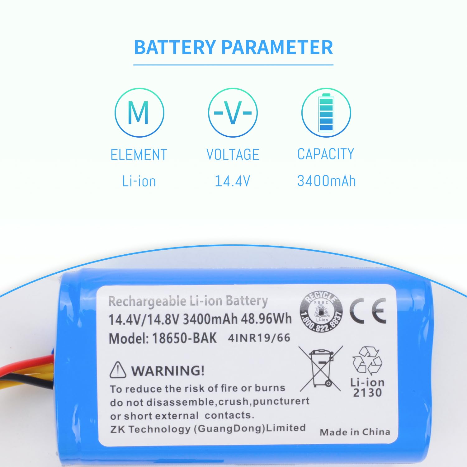 - Specification:Voltage:14.4V; Capacity:3400mAh; Battery Type: Lithium Ion; Conditiin:100% brand new from the manufacturer Connector