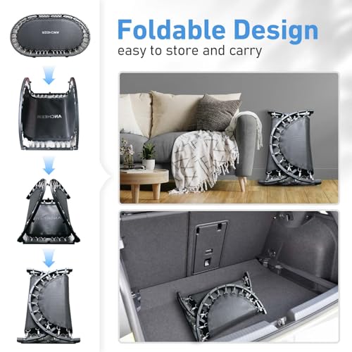 ANCHEER Foldable Trampoline, Mini Rebounder Trampoline with Adjustable Handle, Exercise Trampoline for Indoor/Garden/Workout Cardio, Parent-Child Twins Trampoline Max Load 220lbs (Training Blue)