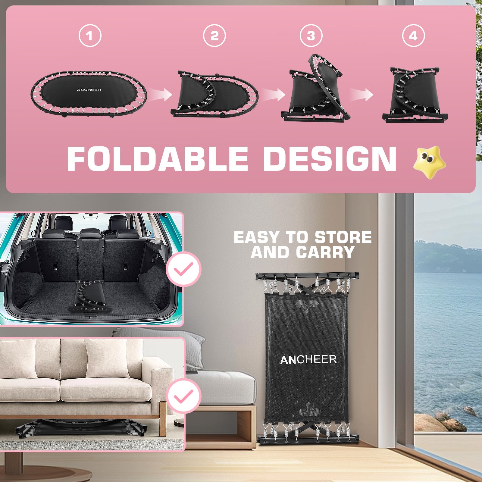 ANCHEER Foldable Trampoline, Mini Rebounder Trampoline with Adjustable Handle, Exercise Trampoline for Indoor/Garden/Workout Cardio, Parent-Child Twins Trampoline Max Load 220lbs (Training Pink)