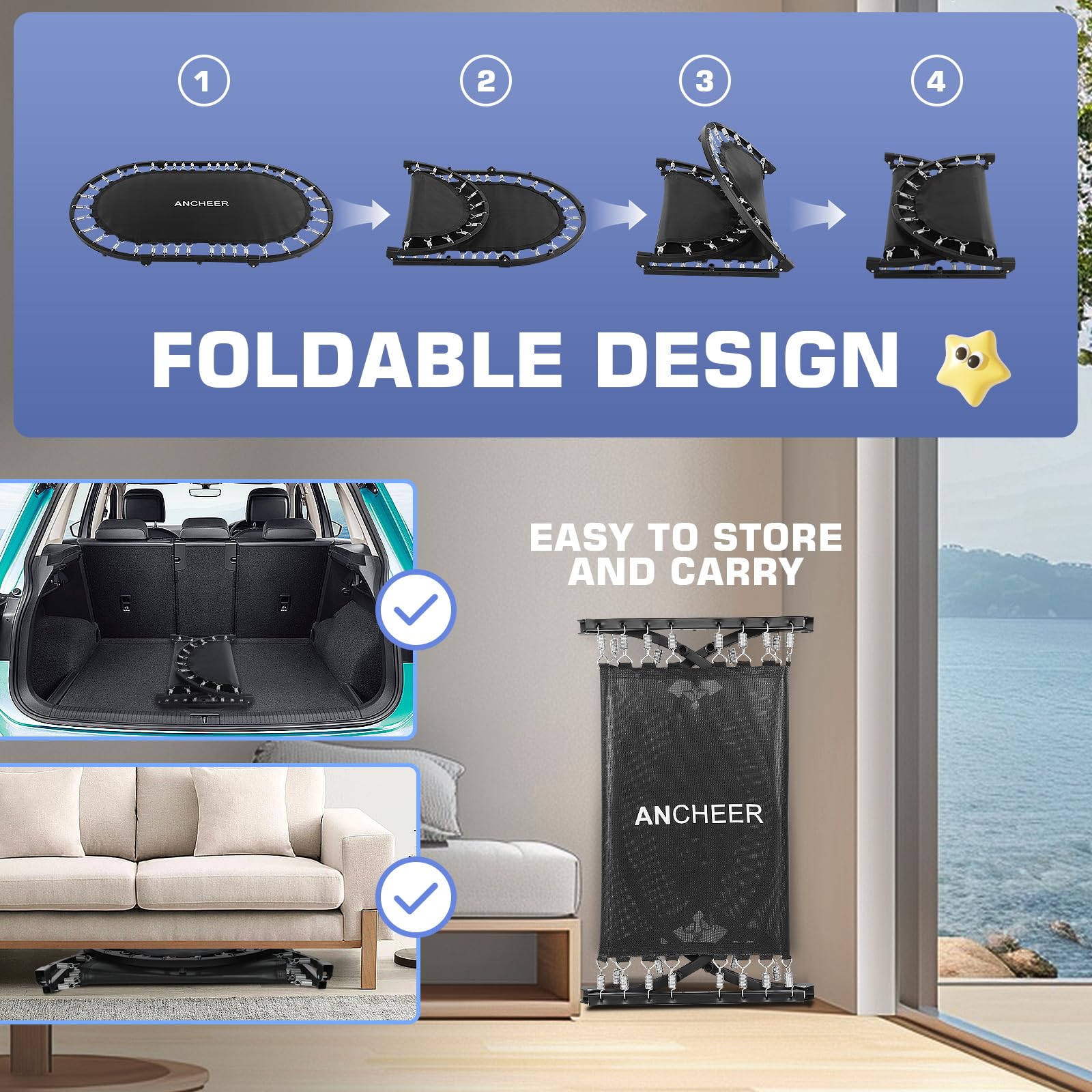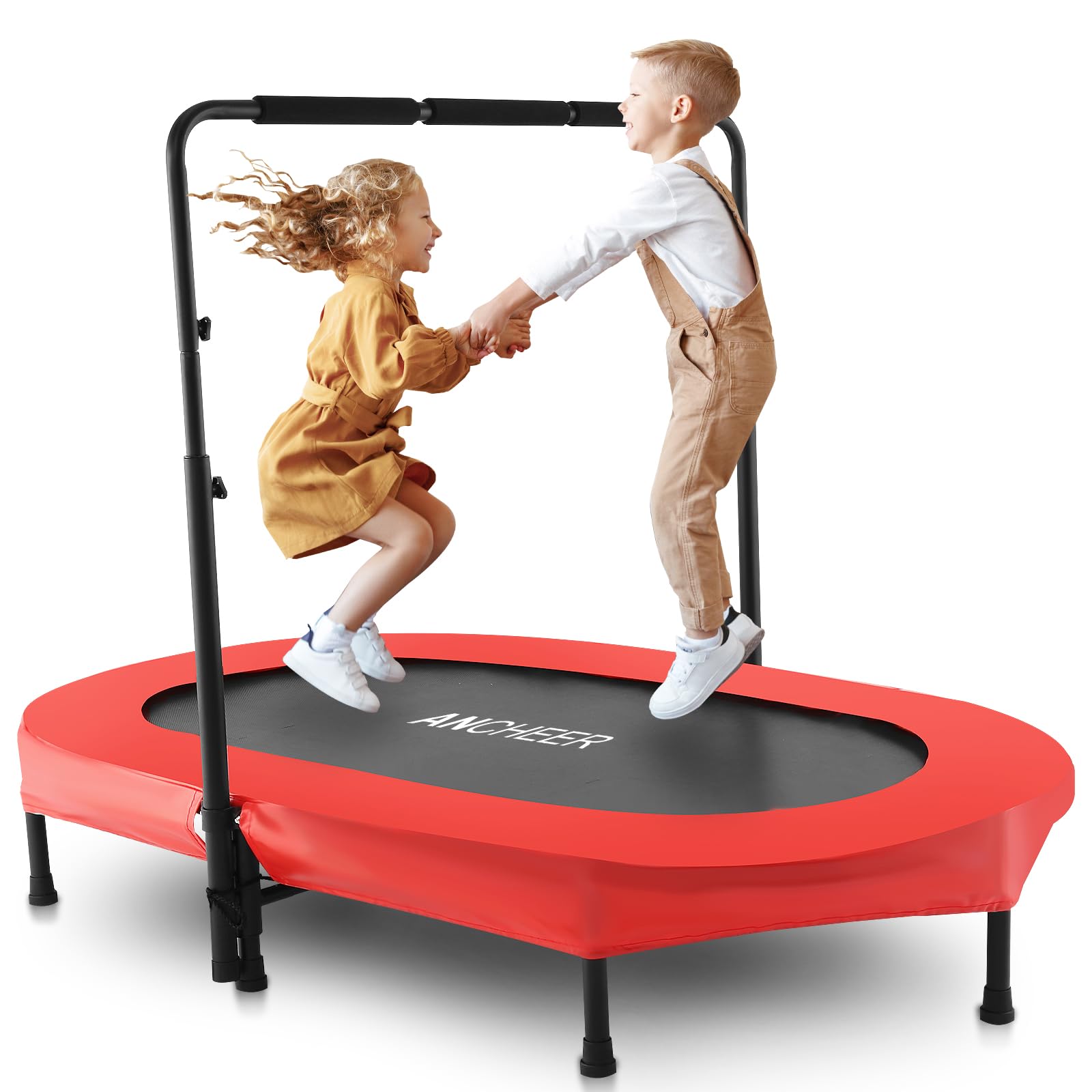 ANCHEER Foldable Trampoline, Mini Rebounder Trampoline with Adjustable Handle, Exercise Trampoline for Indoor/Garden/Workout Cardio, Parent-Child Twins Trampoline Max Load 220lbs (Training Red)