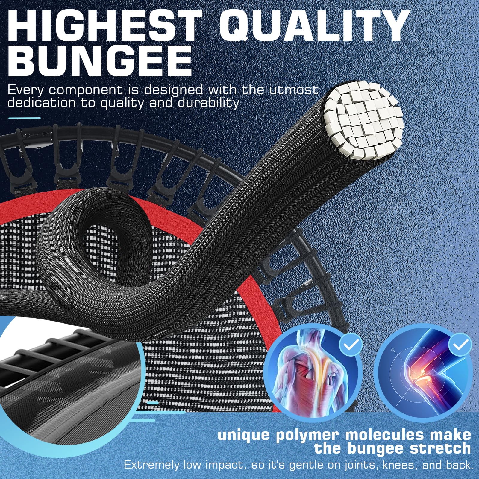 - 【Professional Mini Fitness Trampolines】 The more you bounce, the more comfortable. ANCHEER is dedicated to the most scientific way of bouncing. Upgraded 1.2mm thickened bungees provide smoother and more stable bouncing assistance. Linear bungee feedback reduces the impact of intense bouncing on the knee joint.