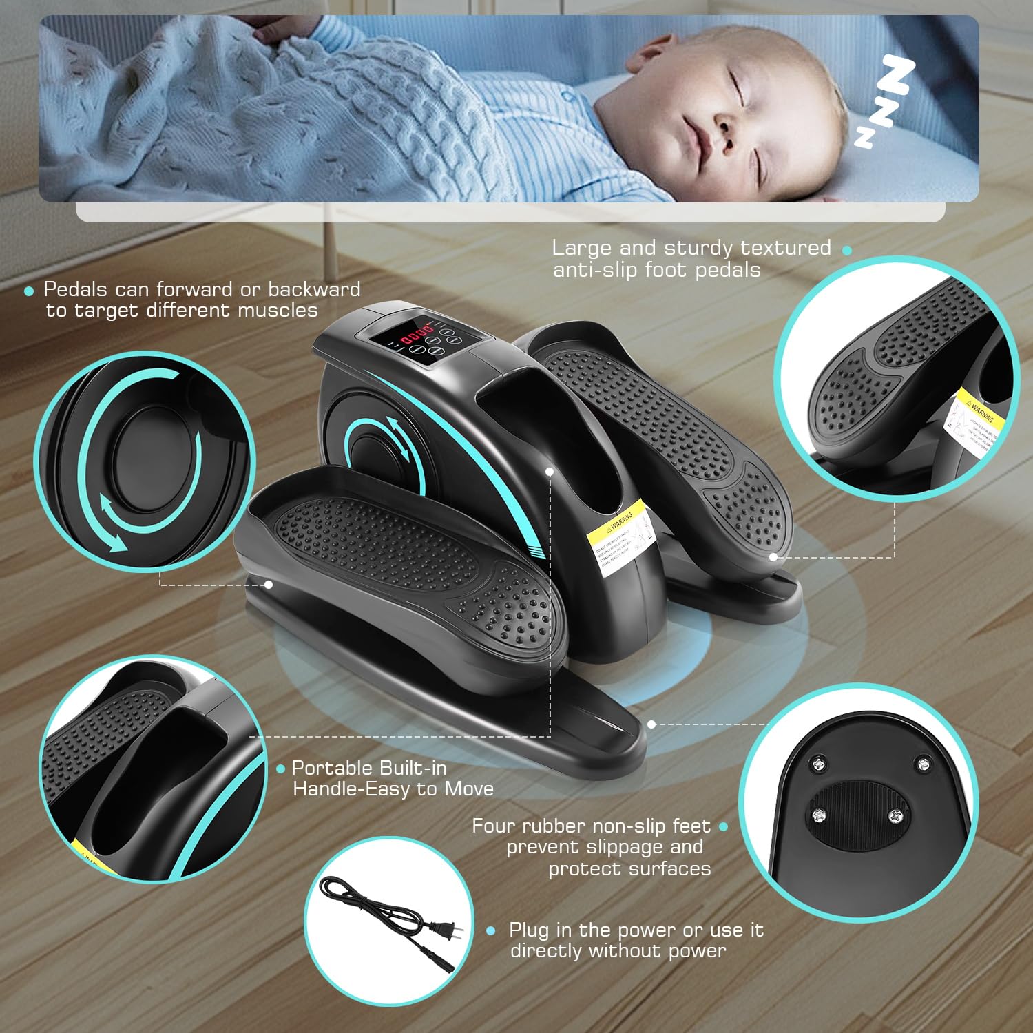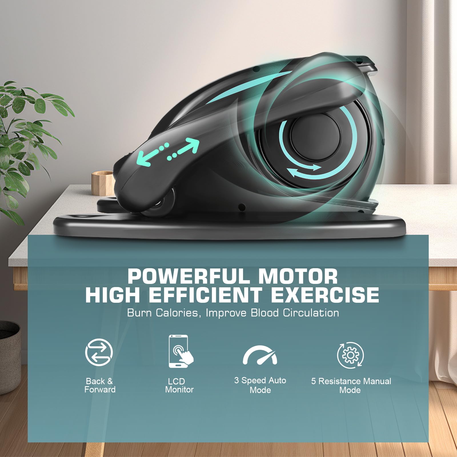- 🚴‍♂️LARGE ANTI-SLIP PEDALS: Get an effective workout with large textured anti-slip foot pedals and low-attention exercise that promotes leg movement and improved circulation in a non-distracting way. ANCHEER under desk elliptical machine is nice exercise equipment for home workouts