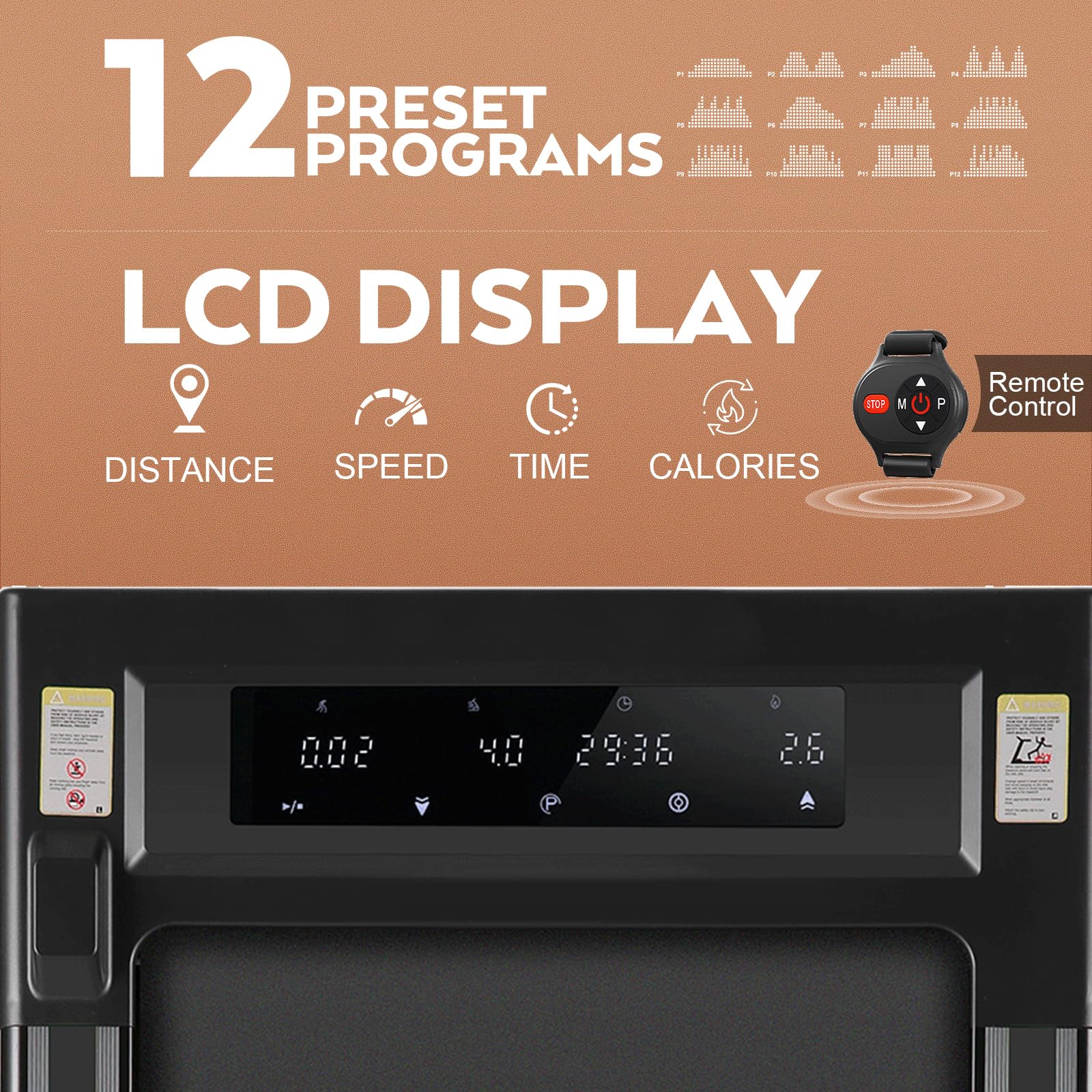 - Supports 3-Ways Control Treadmills for Home: You can easily adjust your running speed or turn on/off, with the multifunctional touch screen and shortcut buttons on the handrail. In addition, the remote watch allows you to conveniently operate the folding treadmill from a distance. The compact size of our walking treadmill makes it ideal for those who are looking for a convenient and relaxing workout
