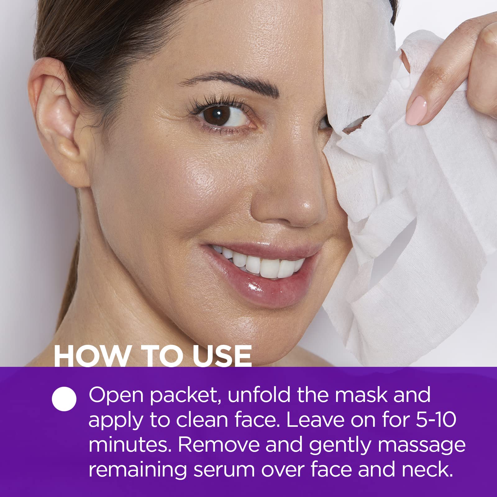 - 'Instant Rejuvenate & Firm: For an instant results, open packet, unfold the mask and apply to clean face. Leave on for 5-10 minutes. Remove and gently massage remaining serum over face and neck. No need to rinse off. '