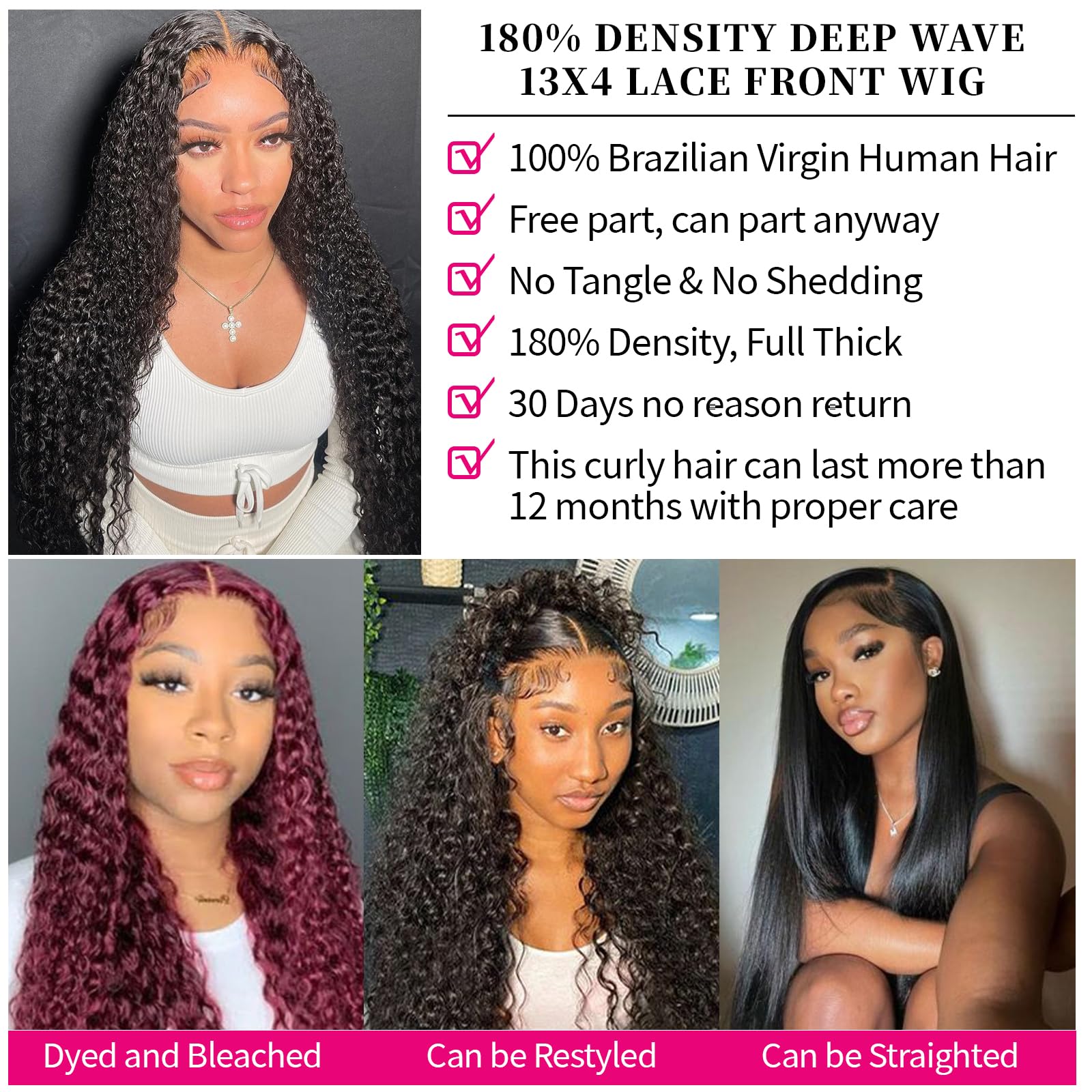 - 💕Versatile for Various Occasions: Lace Front Wig Human Hair Deep wave lace front wigs enhance your allure and confidence on a multitude of occasions, including weddings, appointments, themed parties, back to school, and everyday life. Moreover, this 180 density HD lace front wig serves as a delightful gift option for your beloved family and friends on special occasions.
