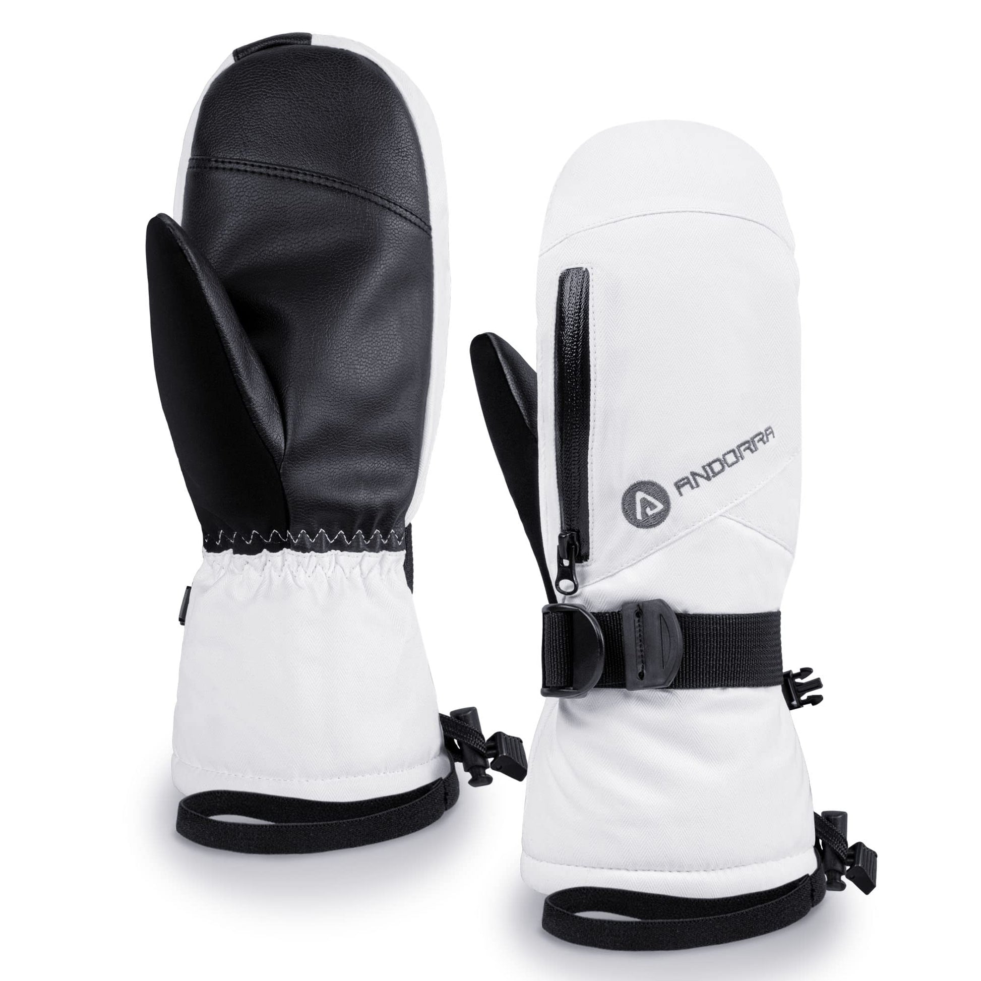 ANDORRA Ski Gloves Women Winter White Ski Mittens Women Waterproof Skiing Mittens for Women Touchscreen Zipper Pocket Womens Snow Gloves, White,M