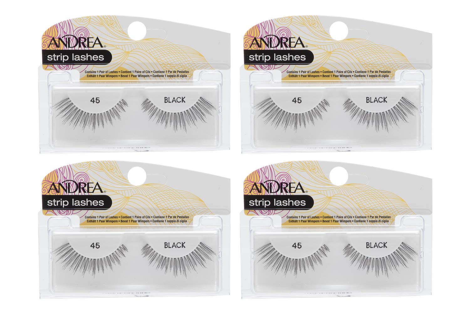 - BEST VALUE, TRAVEL PERFECT STRIP EYELASHES: Go on gorgeous all the time, and be glamorous effortlessly! Best value for money you can get from this Andrea False Lashes in Style 45! A cult-favorite, these falsies are very handy and ideal for going out, attracting attention, special events and are your best friends. Have these four pairs around and be extremely attractive all day and night without spending a lot of money. Never let the lash shortage stop your party again!