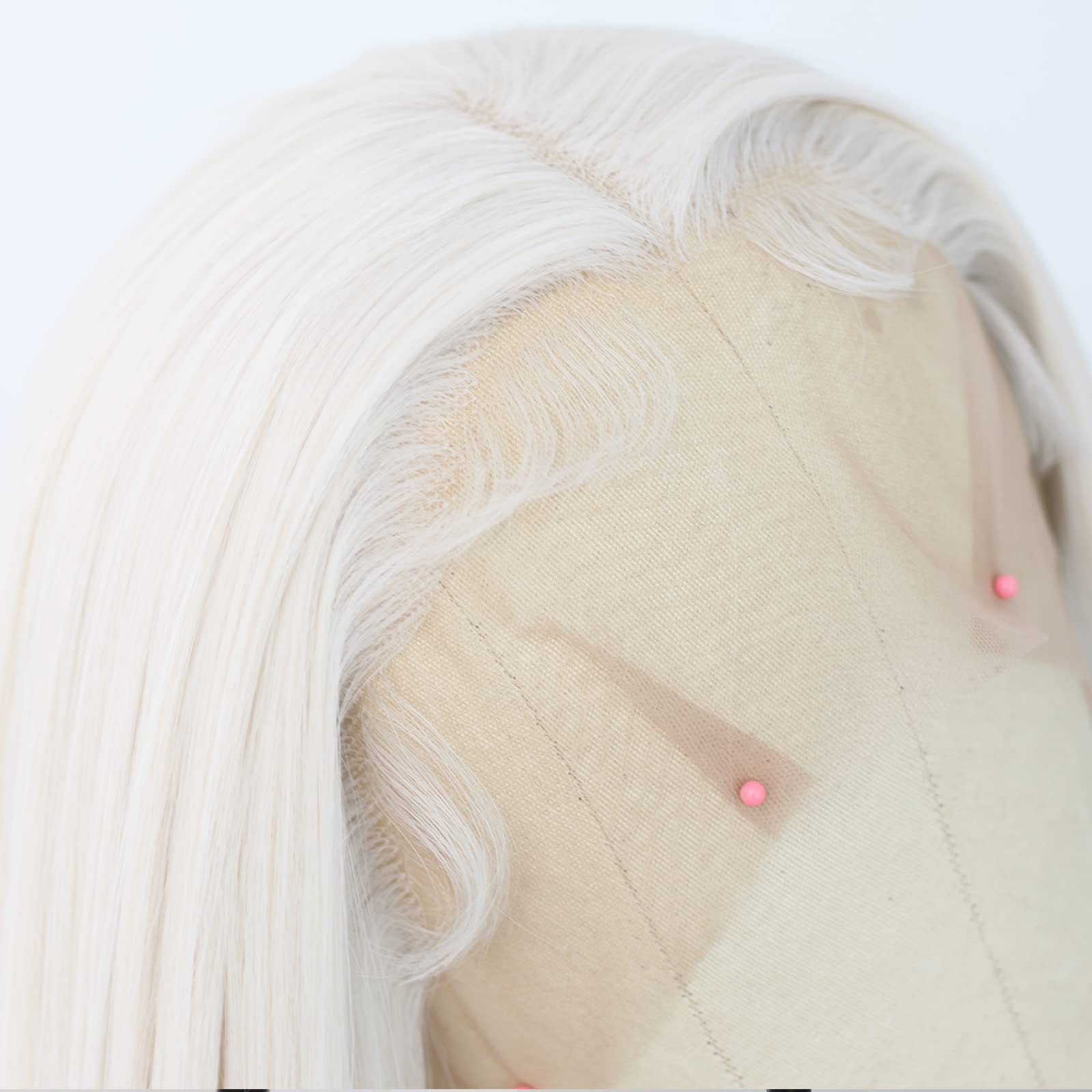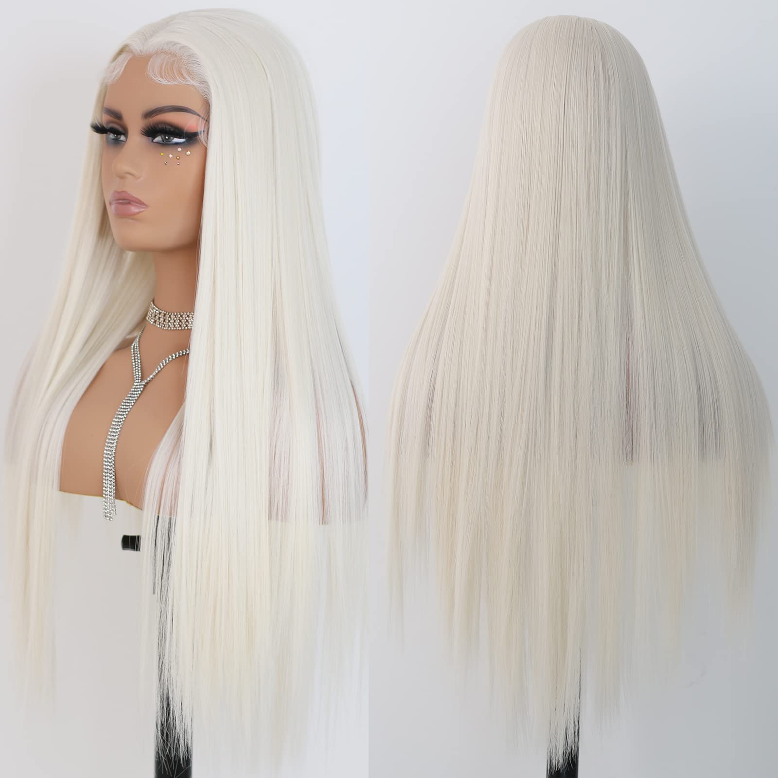 ANDRIA Lace Front Wigs Straight Hair Glueless Lace Wigs Synthetic Long Silk Straight Natural Wig Heat Resistant Fiber Platinum Blonde Colorful Wig With Baby Hair For Black Women 24 Inches