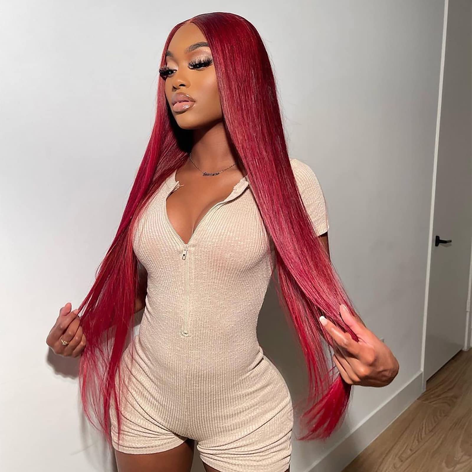 Color: Burgundy Straight Wig