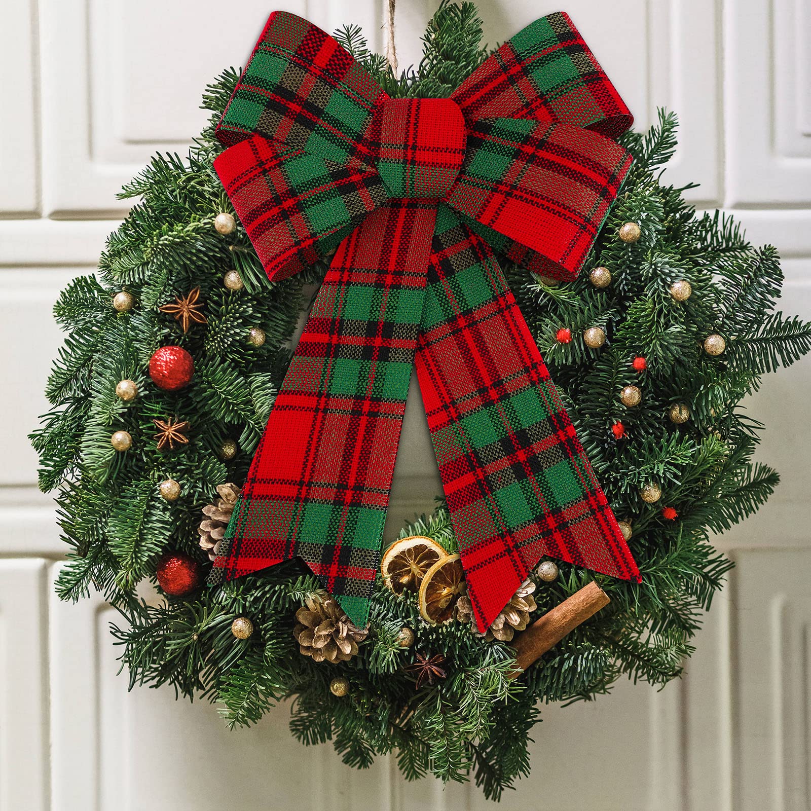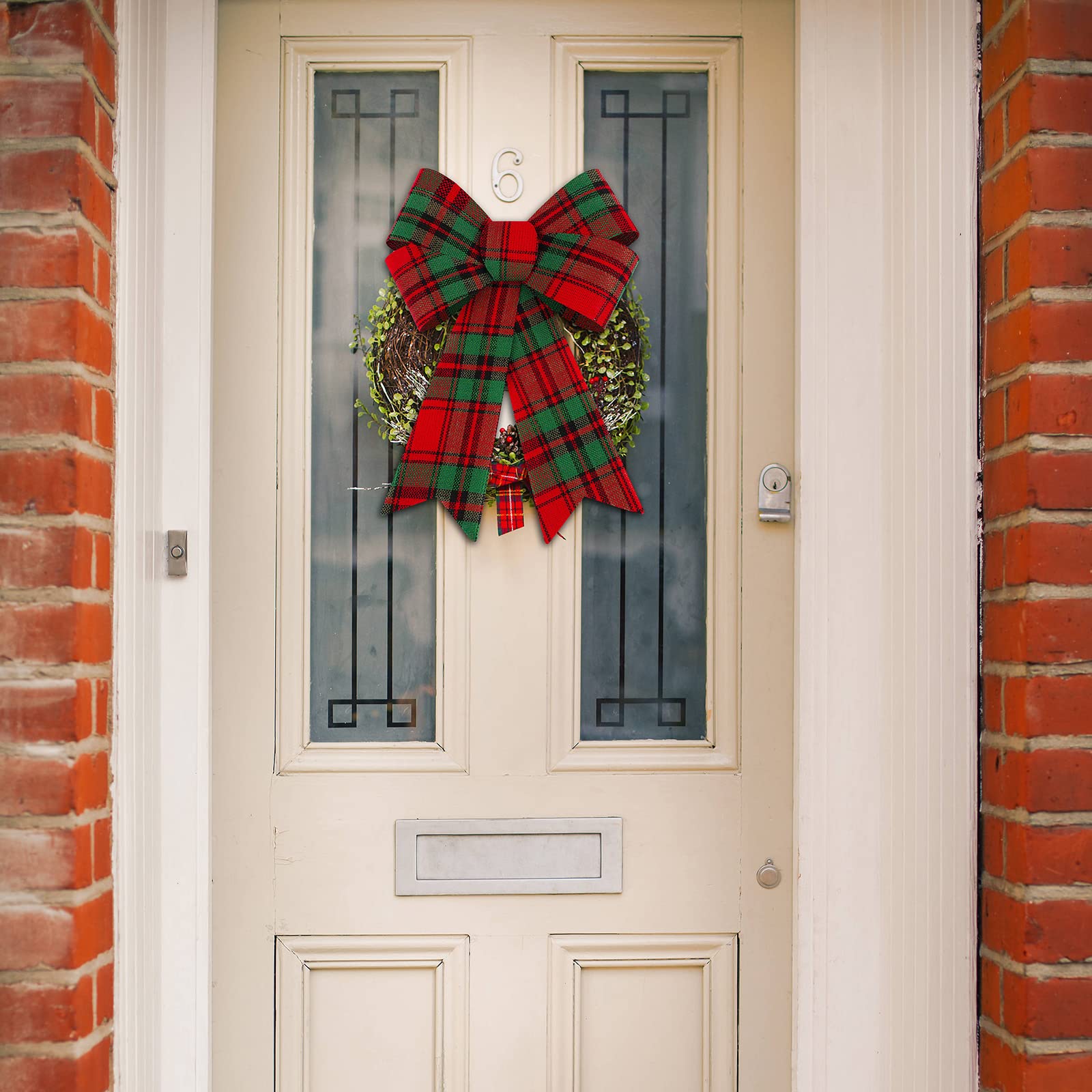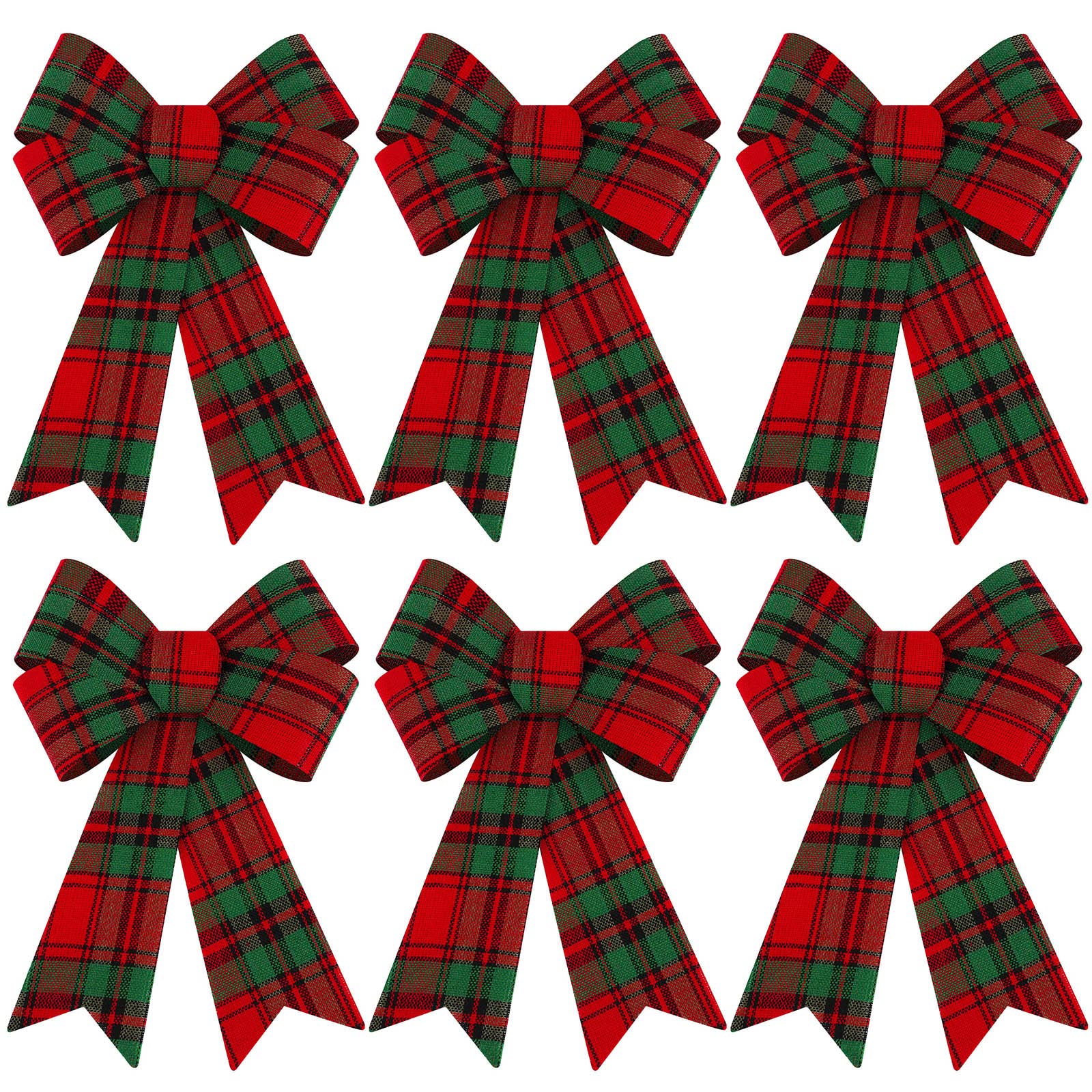 Aneco 6 Pack Red and Green Buffalo Plaid Christmas Wreaths Velvet Bows for Indoor and Outdoor Decorations