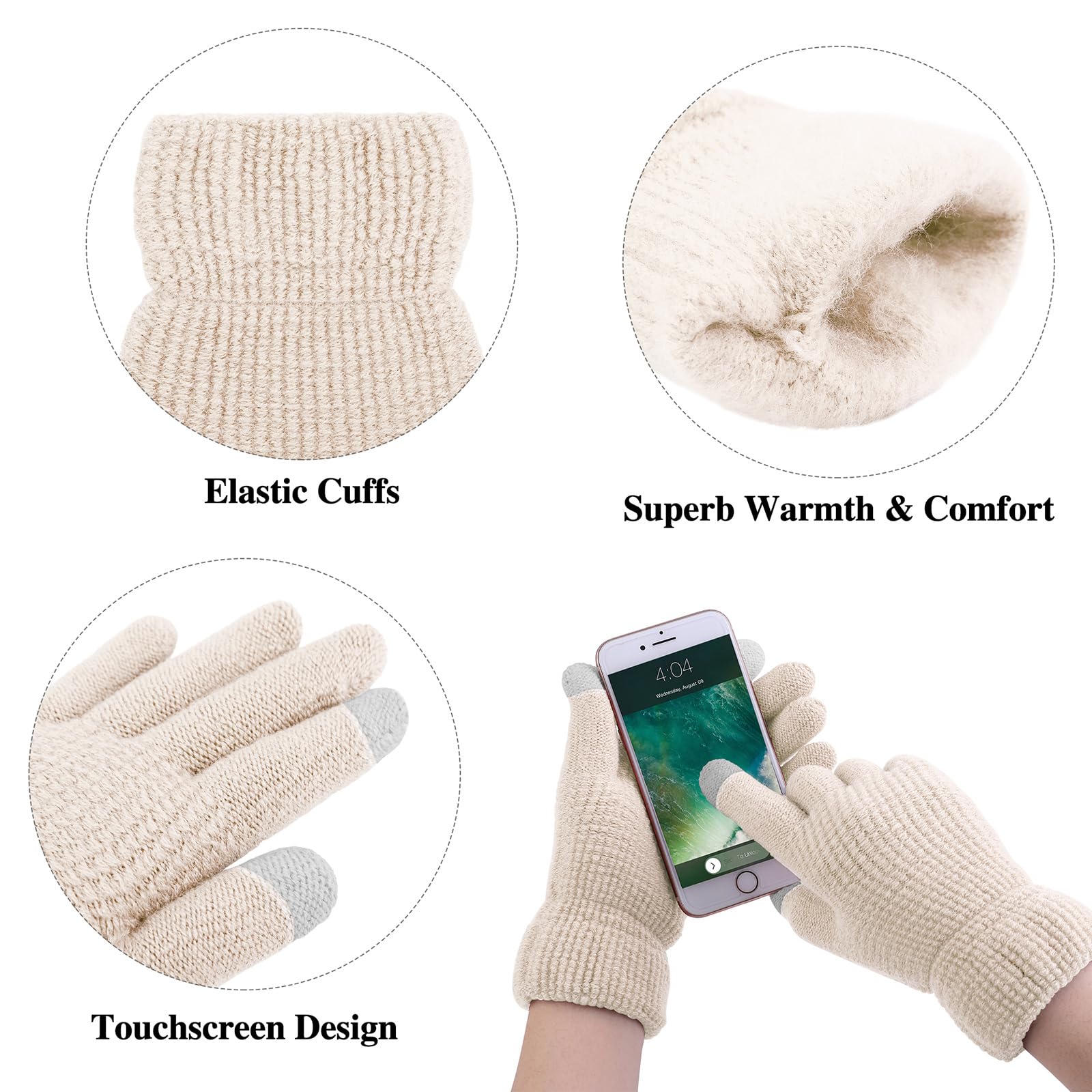 - Stylish design: the warm knitted hat with fur pompom on the top that feels comfortable, adding fashion sense and cuteness to the hat; circle loop scarf has unique knitting pattern, which has the sense of hierarchy, and it is able to collaborate with all kinds of clothes; the gloves have a touch-screen design and can be worn to operate a phone or tablet, very convenient to use