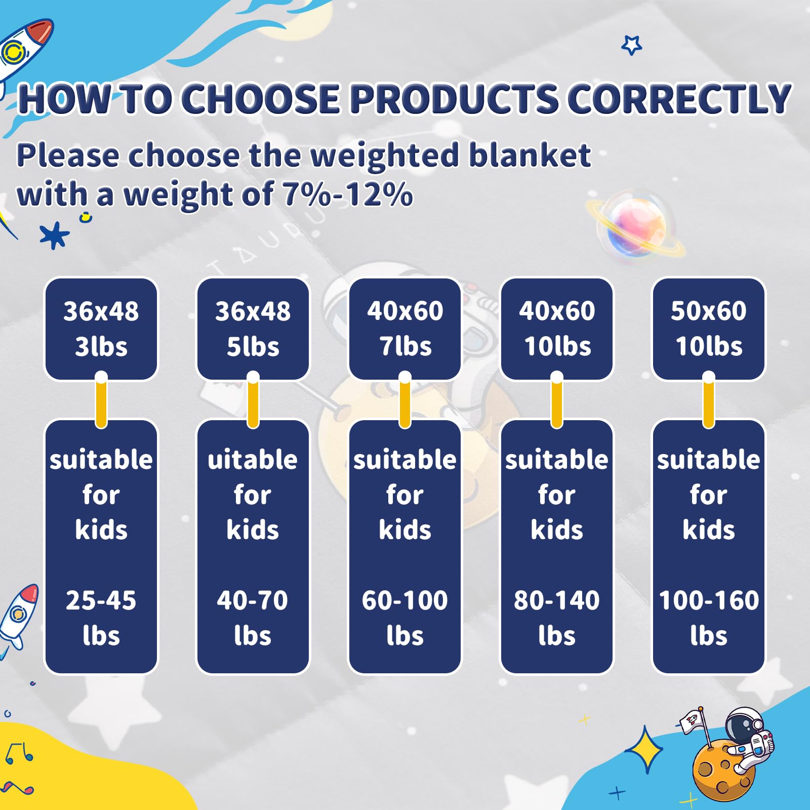 - PLAYFUL CHARM - Our weighted blanket is available in a variety of enchanting designs, including astronauts, the stars, dinosaurs, the sun, and unicorns. Each vibrant blanket adds a touch of whimsy to your kid’s room, nurturing their imagination and making bedtime a magical journey into their own fantasy world