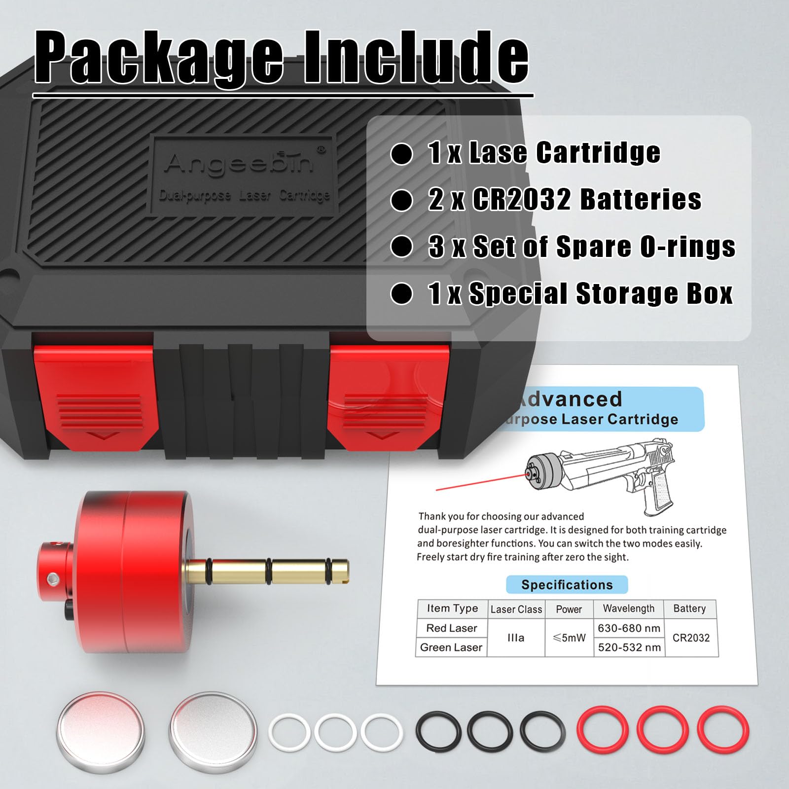 - Long Lasting: The design adopts a CR2032 button battery. It's 3 times more power than batteries of normal laser cartridges. It's cheap and easy to purchase on the market.