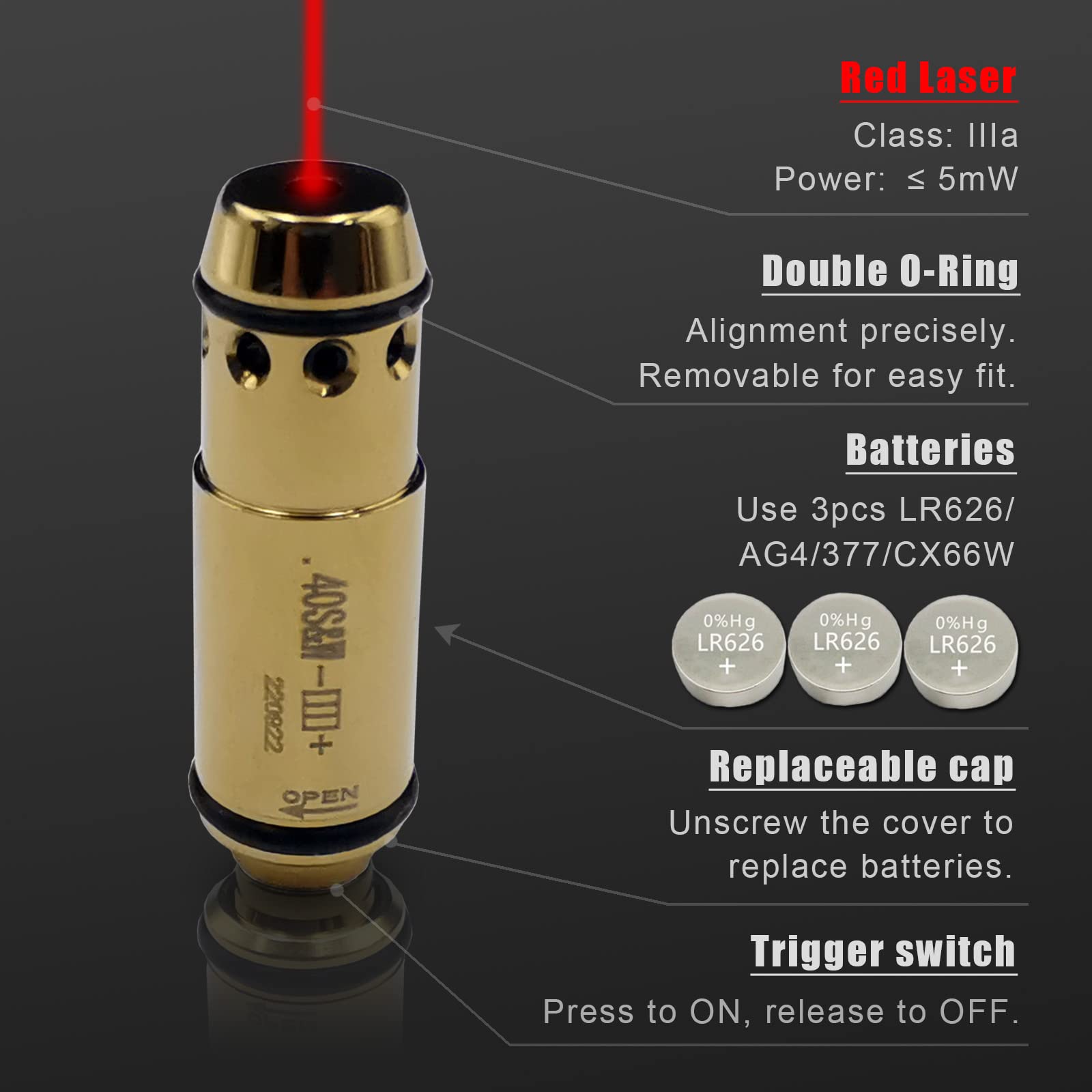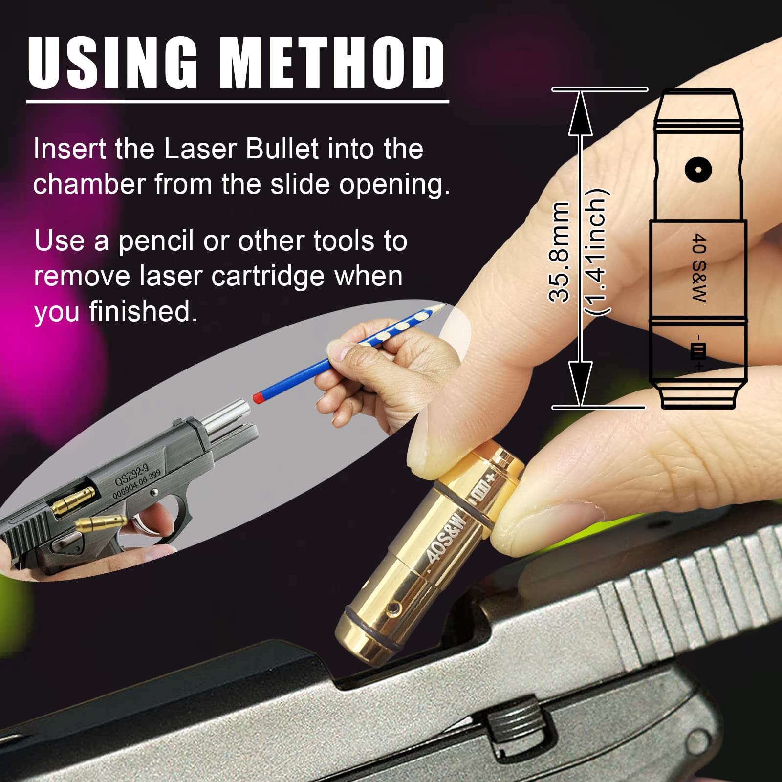 Angeebin Laser Training Cartridge for 45ACP,40S&W,380ACP,9MM Suitable for Dry Fire Training and Boresighting Sight, Red Laser Bullet with Spare Accessories (40s&w)