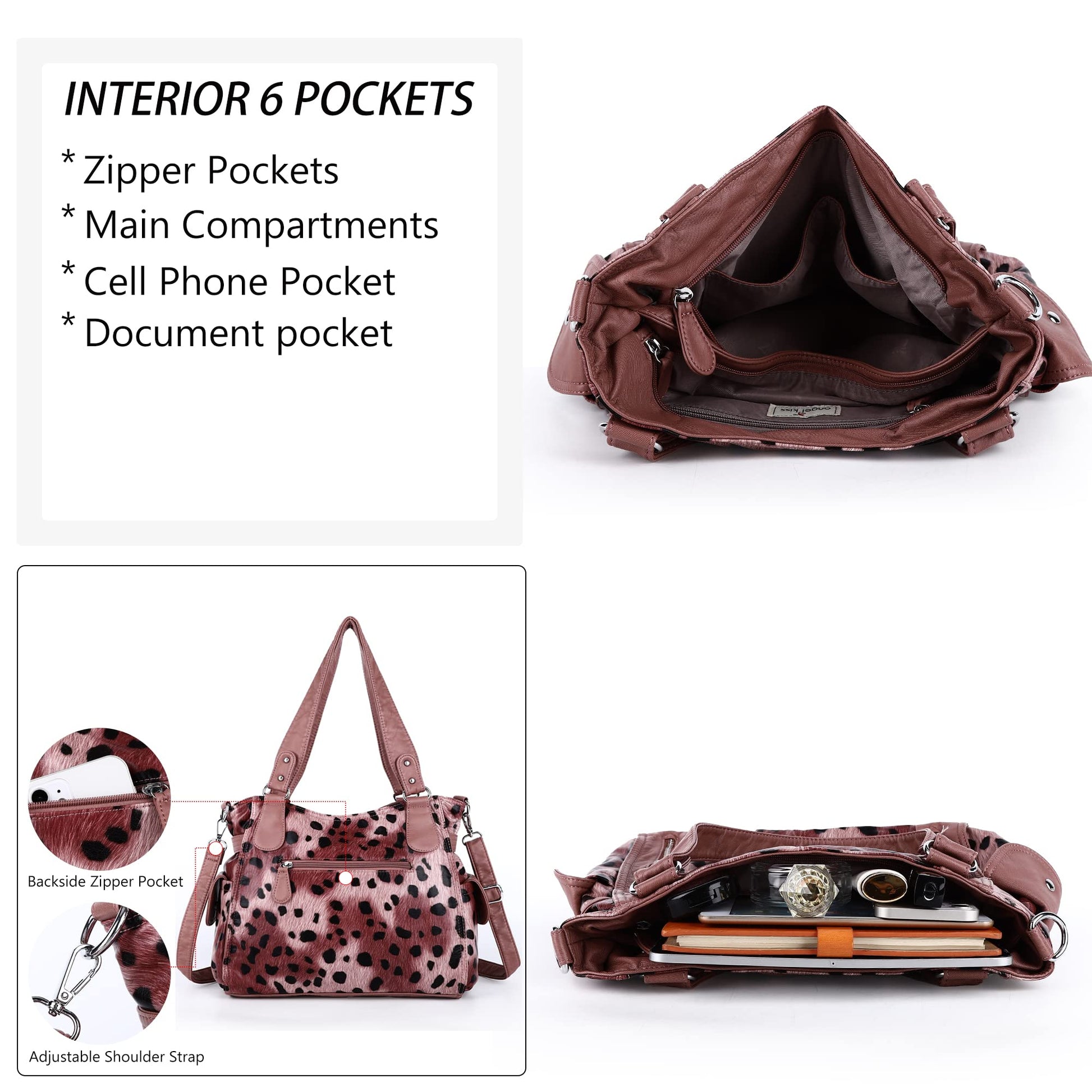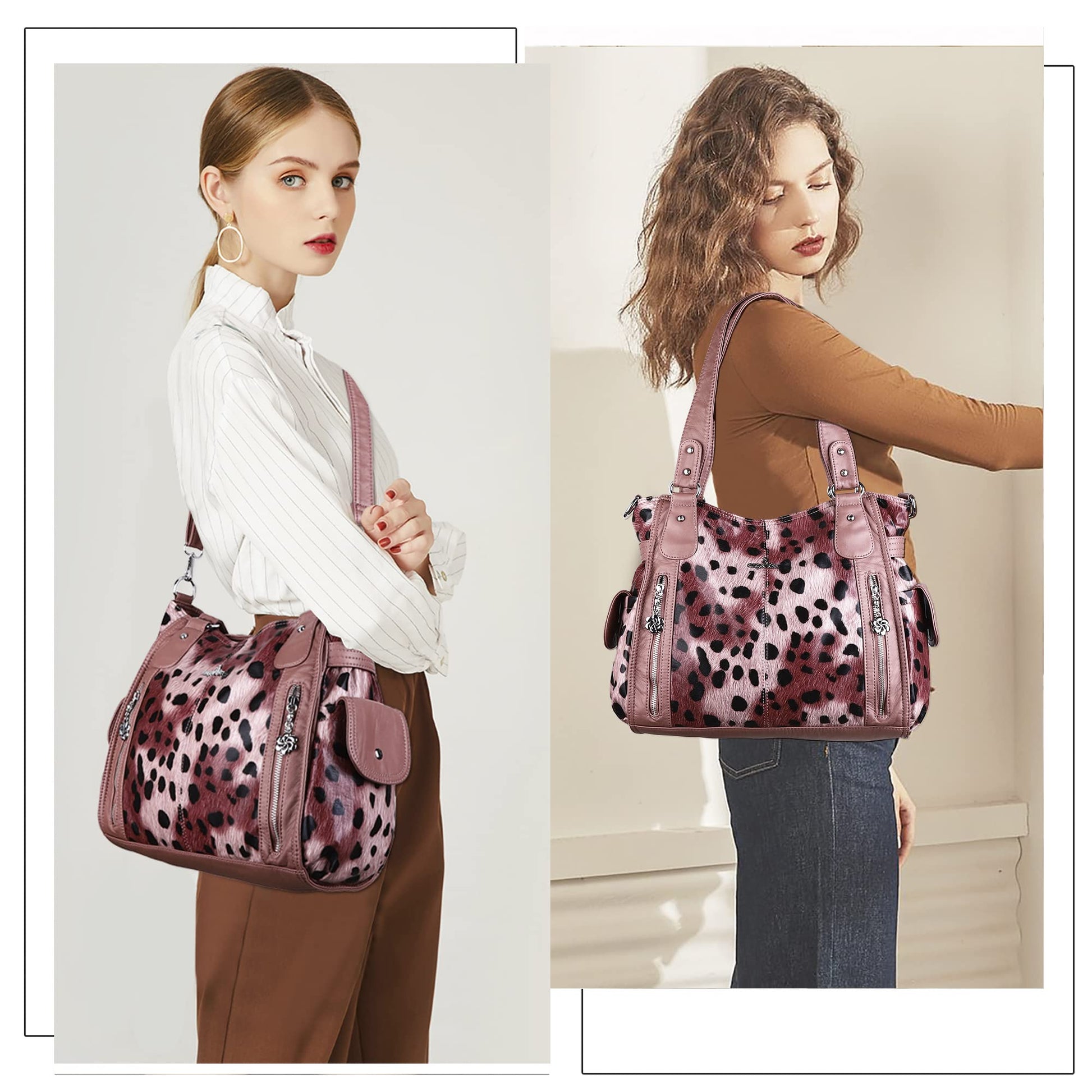 Angel Kiss Handbags for Womens Top-Handle Hobo Purse Roomy Casual Shoulder Bags PU Tote Satchel Purse for Womens 14leopard Pink