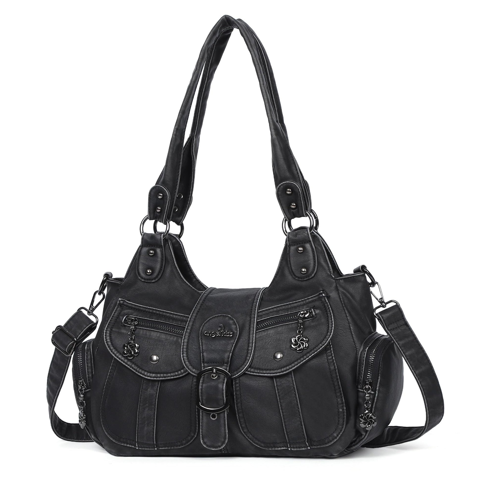 Angel Kiss Hobo Bags for Women Vegan Leather Shoulder Purses and Handbags Ladies Roomy Tote Bags Purse with Crossbody Strap,Black