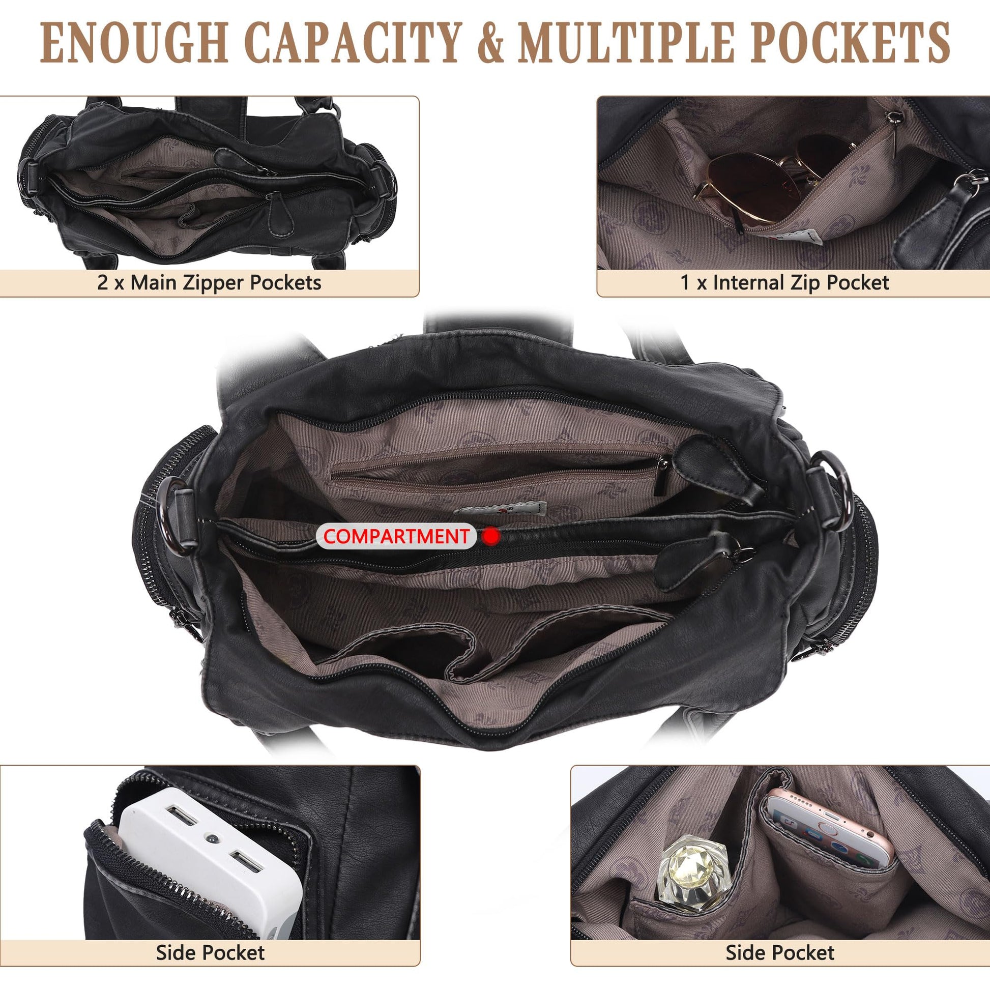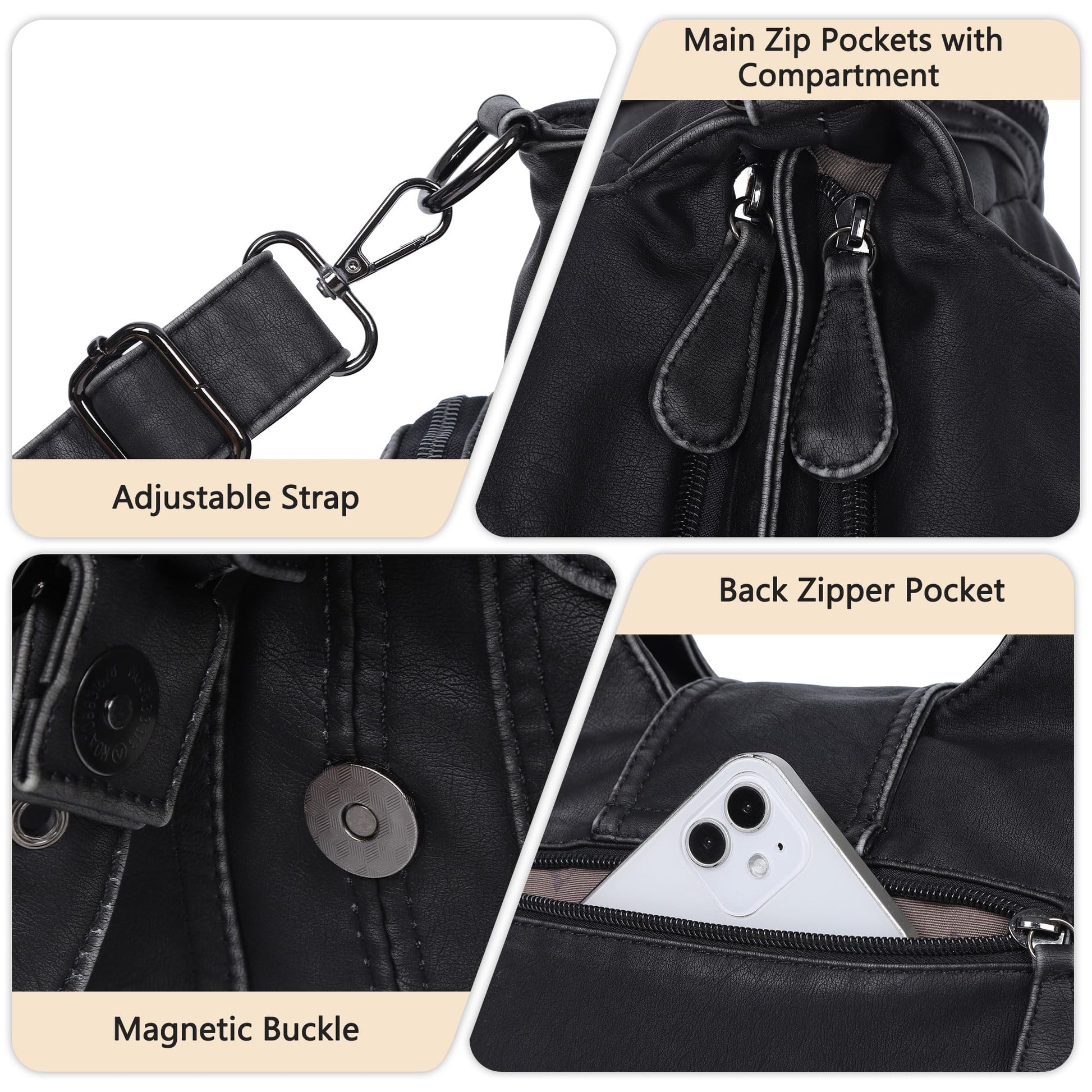 - 【Stylish and Elegant Features】 This women's handbag showcases 2 main divided compartments secured with double zipper closures and a stylish magnetic flap for added safety and panache.It also has two front zipper pockets, two side zipper pockets, and a back zipper pocket for additional storage options. The detachable crossbody strap is adjustable for added comfort and convenience.